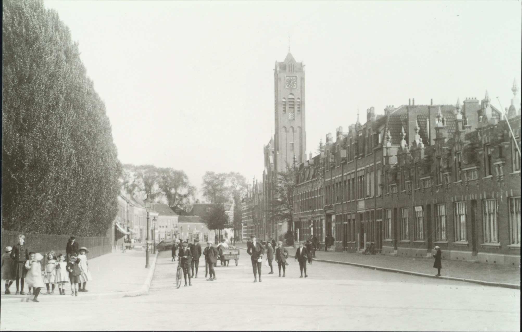 - De Blekersdijk vanaf de Cornelis de Wittstraat richting Wilhelminakerk op de hoek van de Koningin Wilhelminastraat.