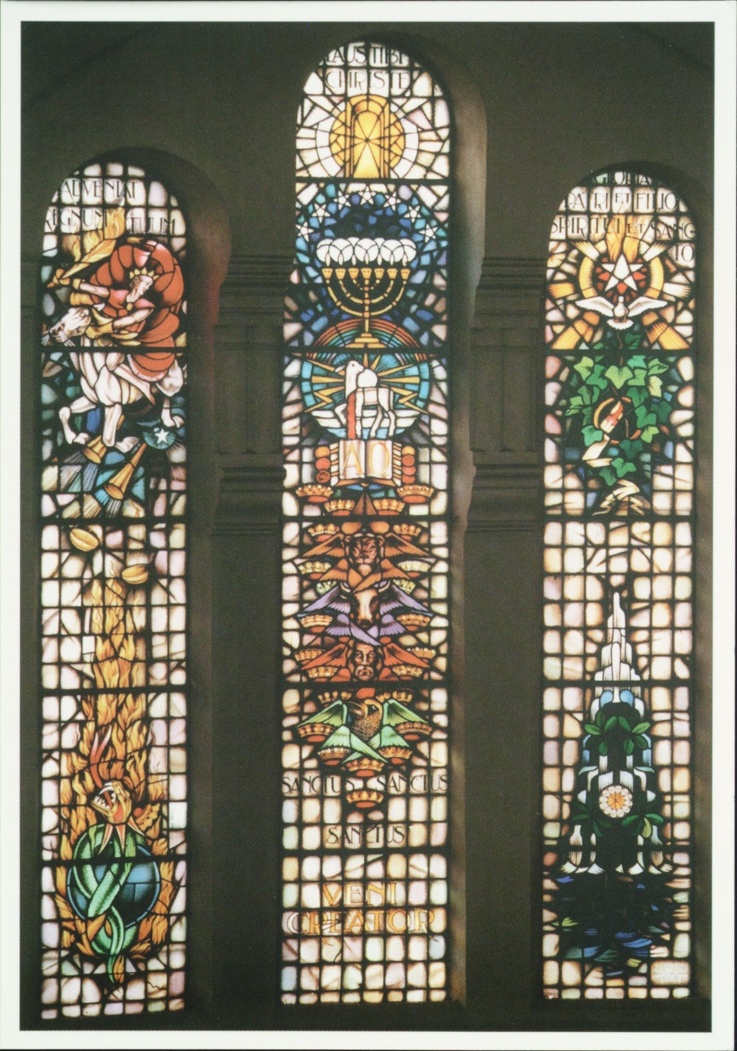 Glas-in-loodraam "De Schepping" in de Wilhelminakerk aan de Blekersdijk.