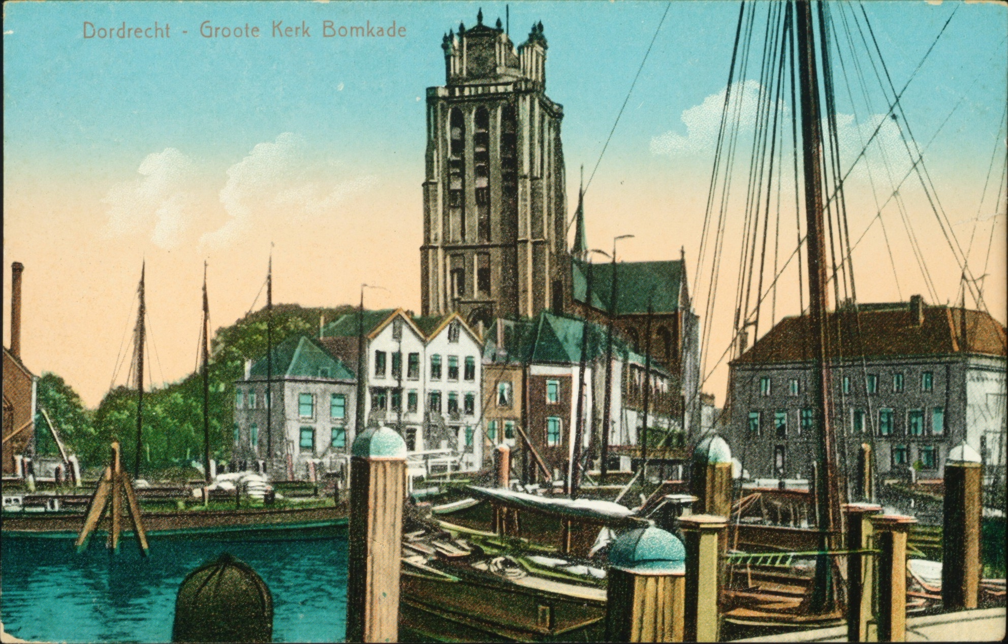 - Bomhaven en Bomkade (rechts), gezien richting Korte Geldersekade en Grote Kerk.