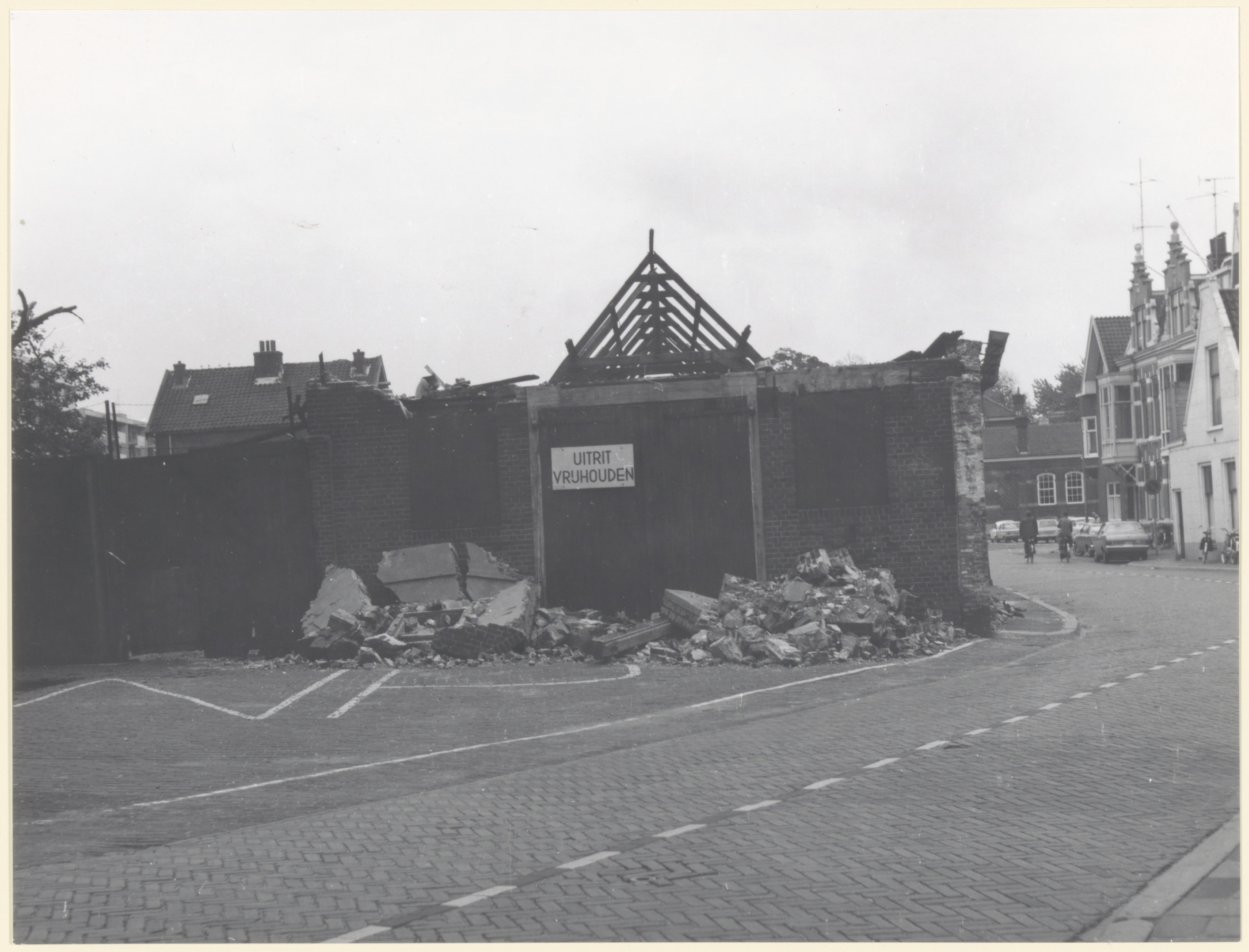 - Sloop van de Lange Loods, de opslagplaats van het korps pontonniers in de Cornelis de Wittstraat, gezien in oostelijke richting; rechts op de achtergrond het gymnasium.