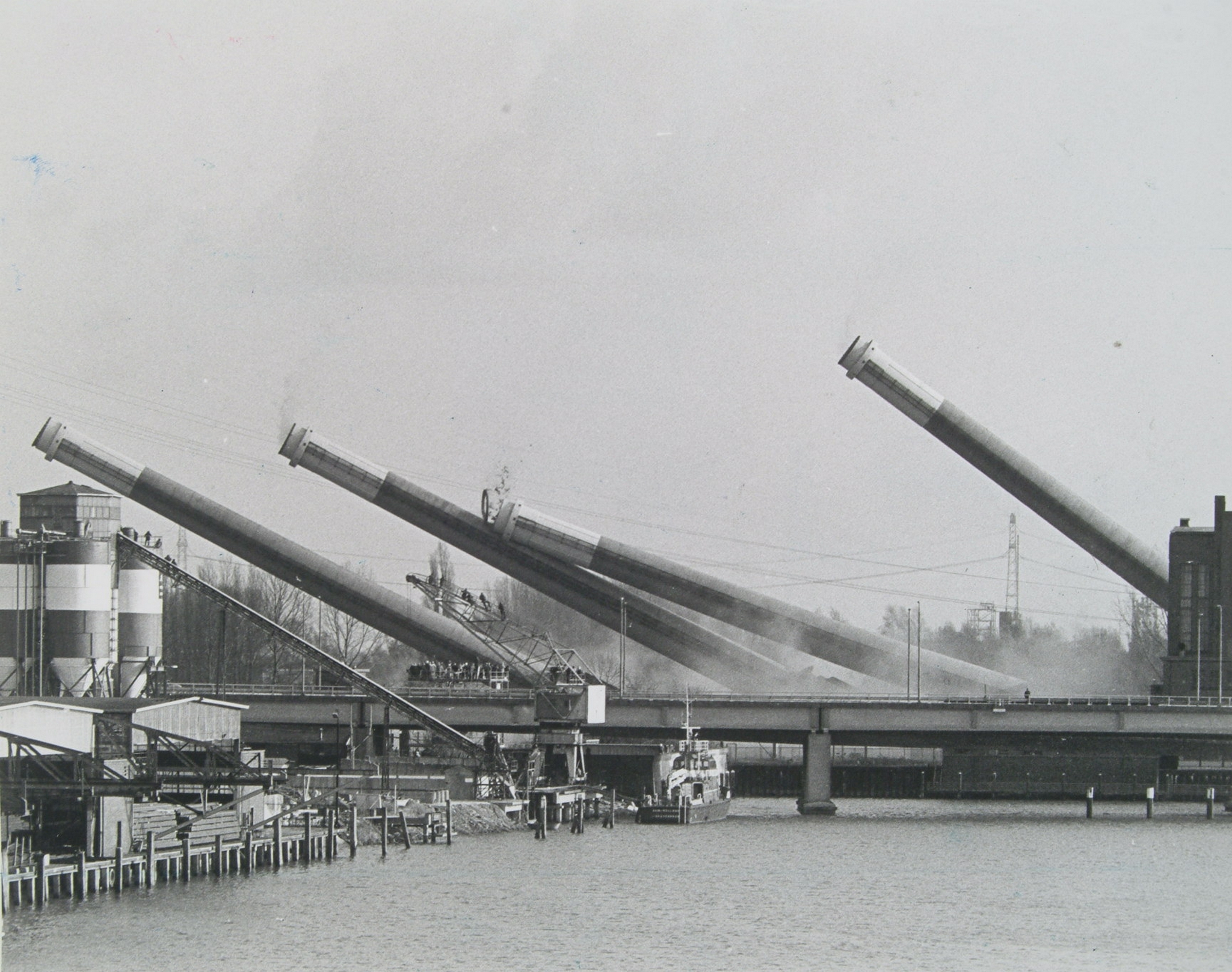 - Opblazen en omvallen van de vier schoorstenen van de elektriciteitscentrale aan de Kerkeplaat