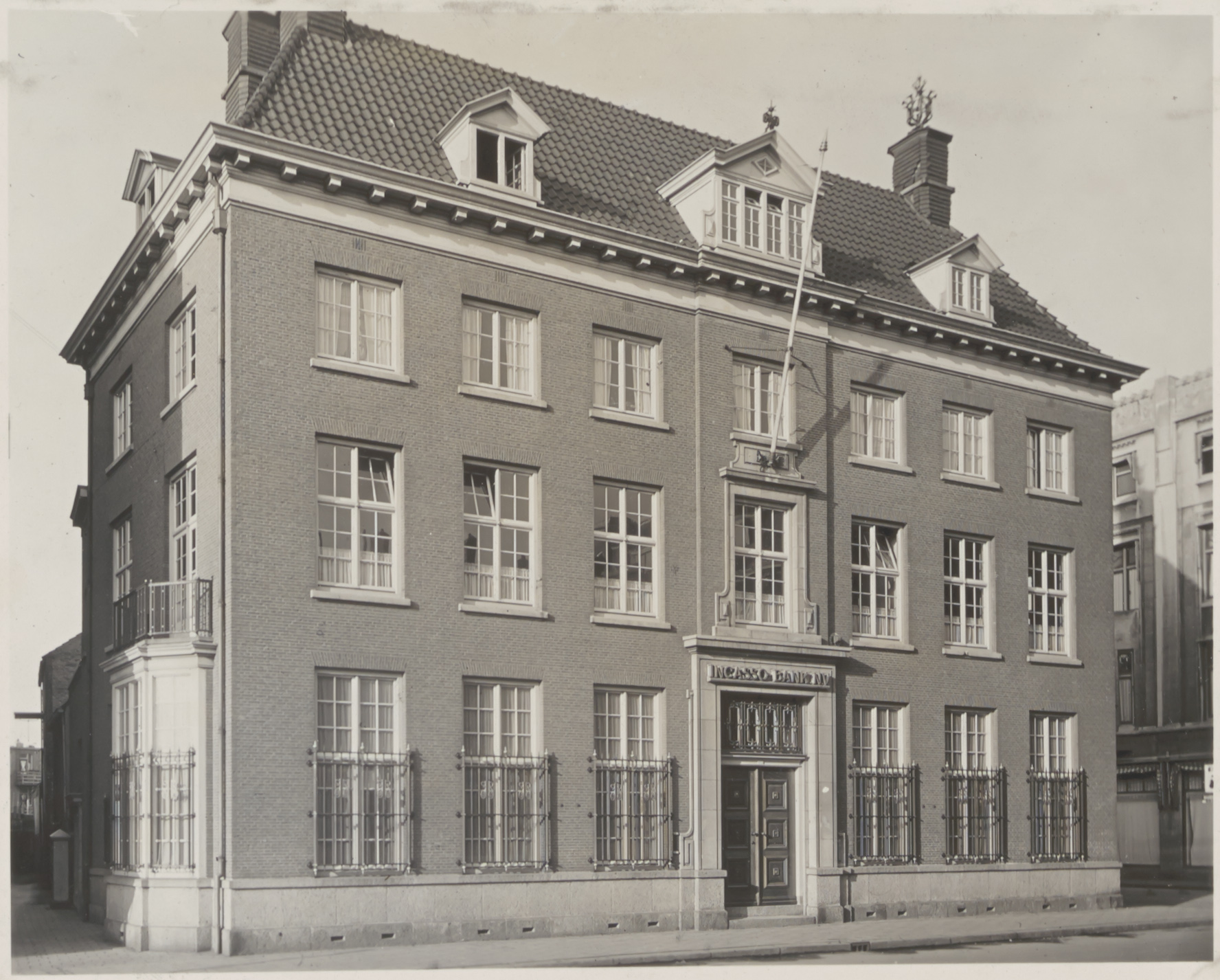 - Het gebouw van de Incassobank aan het Bagijnhof, hoek Lange Breestraat.