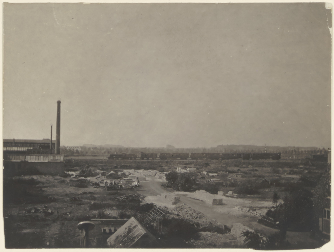 - Gesloopte villa op het buiten Bellevue, op de plaats van de latere Bellevuestraat. Links de Lips-fabriek langs de spoorlijn naar Rotterdam.