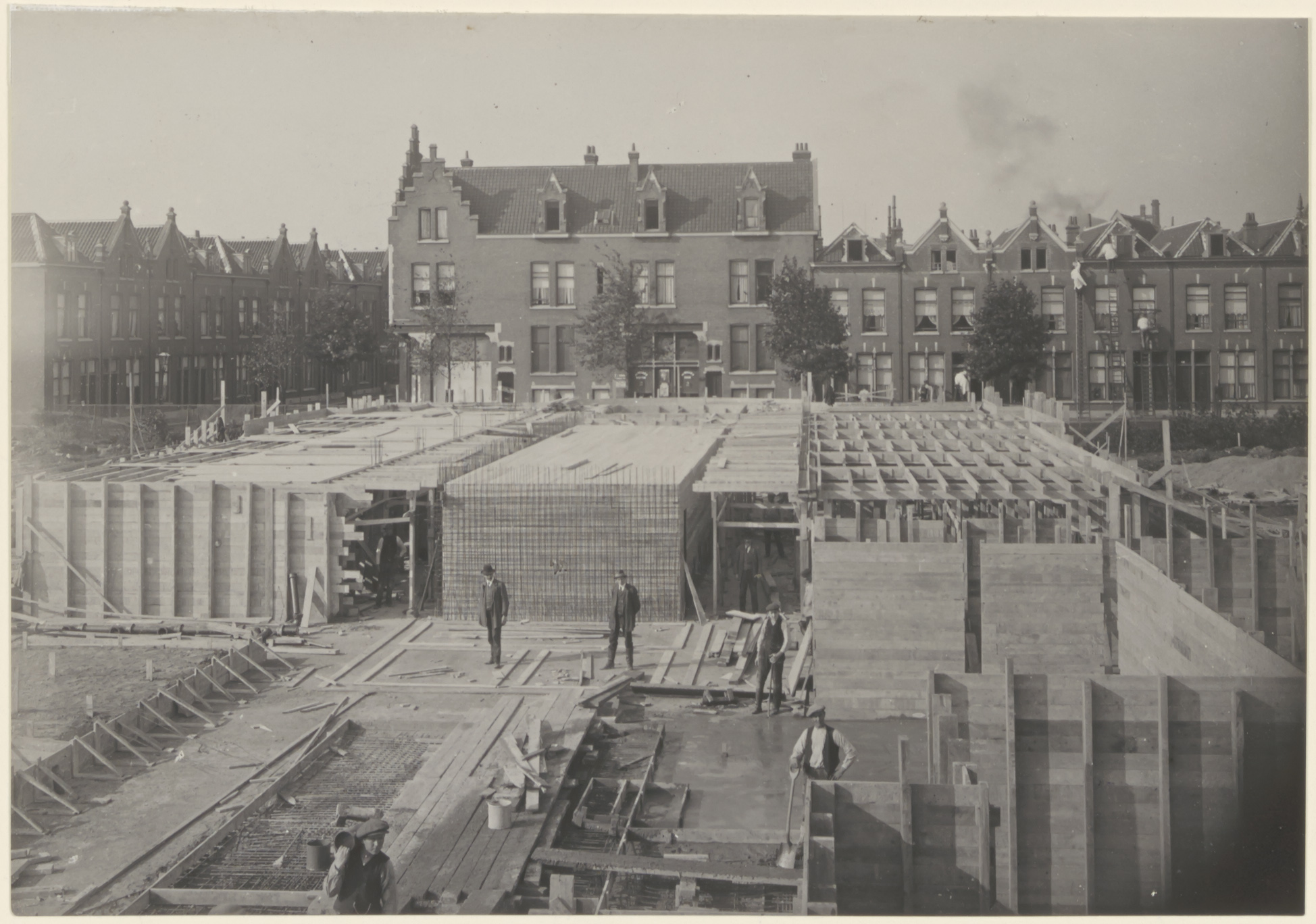 - Bouw van het kantoorgebouw voor Levensverzekeringsmaatschappij Dordrecht aan de Havenstraat. Rechts op de achtergrond de Koninginnestraat.
