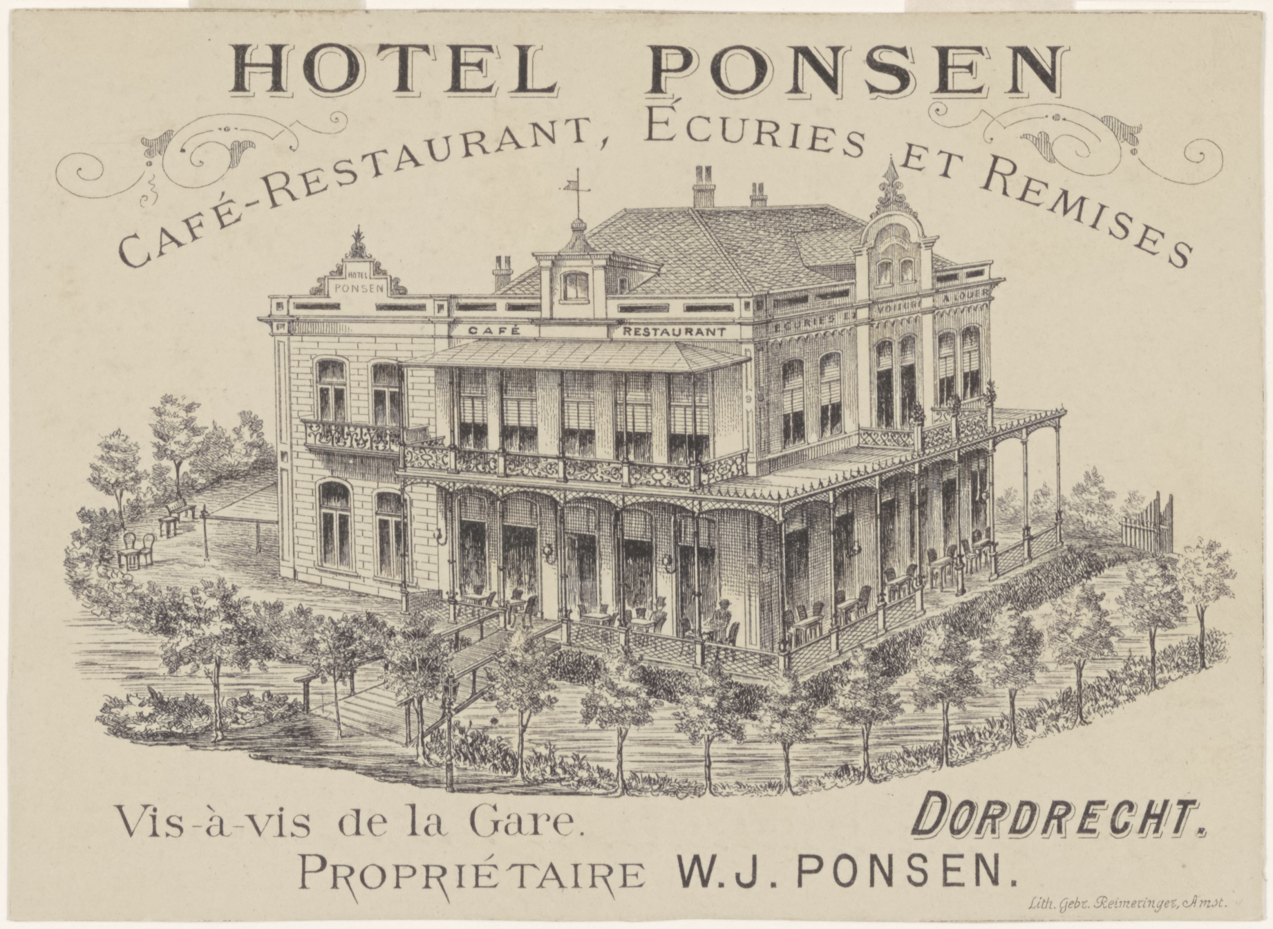 Hotel Ponsen, Stationsweg, hoek Burgemeester de Raadtsingel. Circa 1875,1900,1905 en …