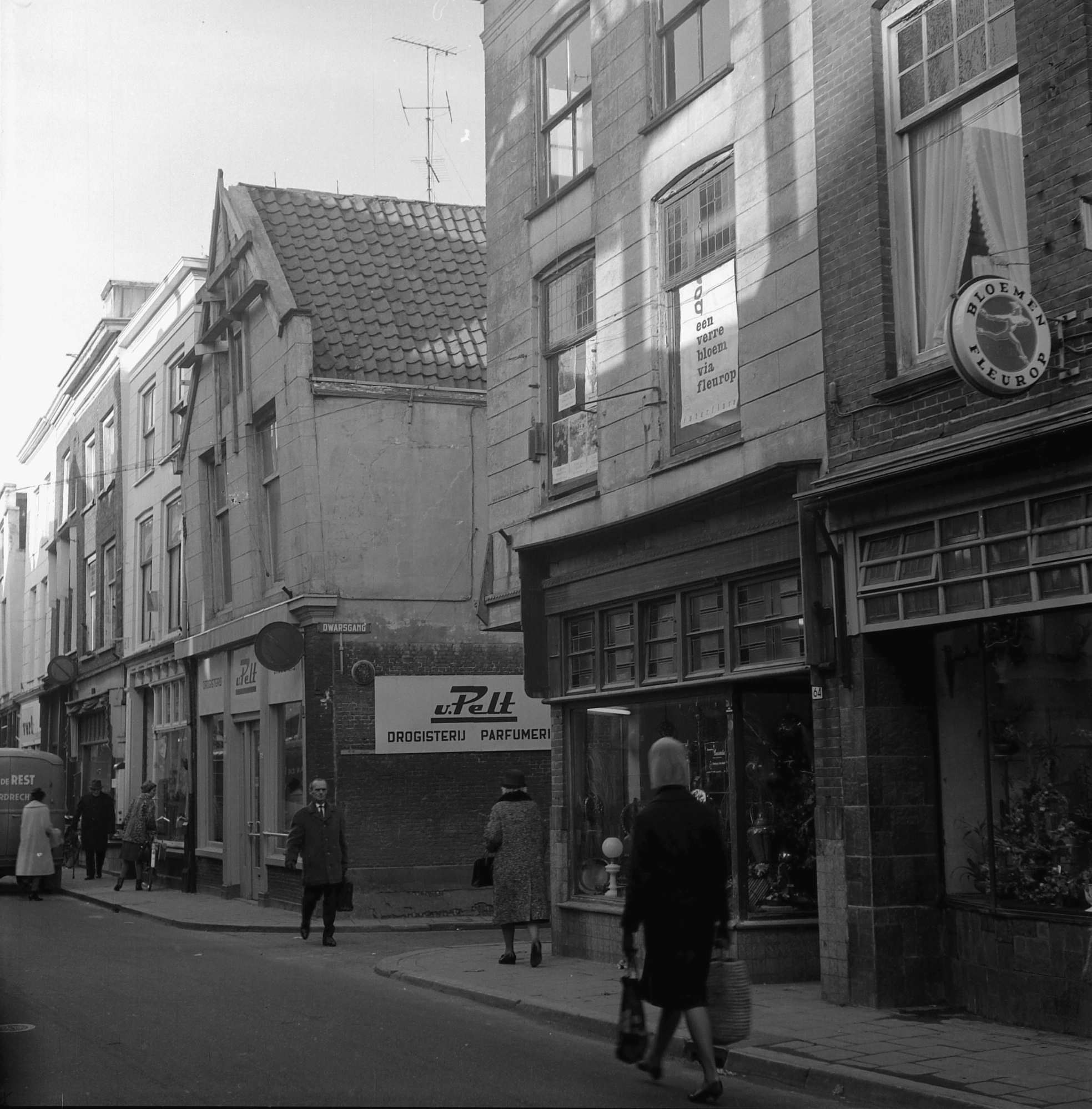 rechts op de foto de etalage van de bloemenzaak van de fa. Sigtermans 1955 zie uithangbord.