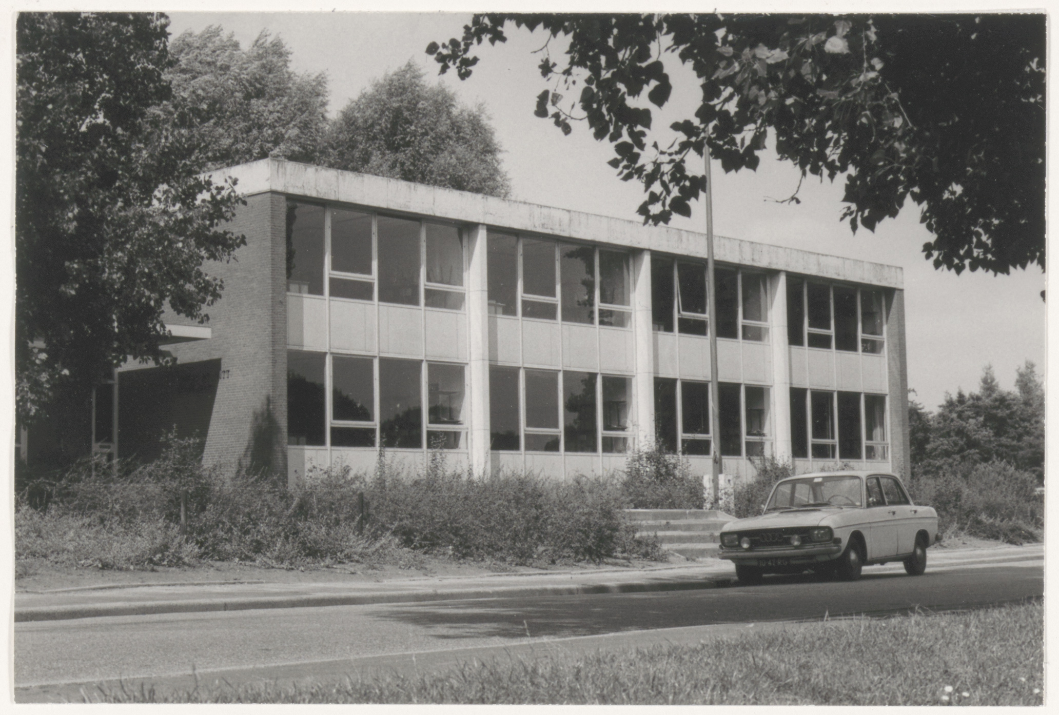 Het in 1966 ingebruikgenomen nieuwe onderkomen van het Johan de Witt Gymnasium aan de …