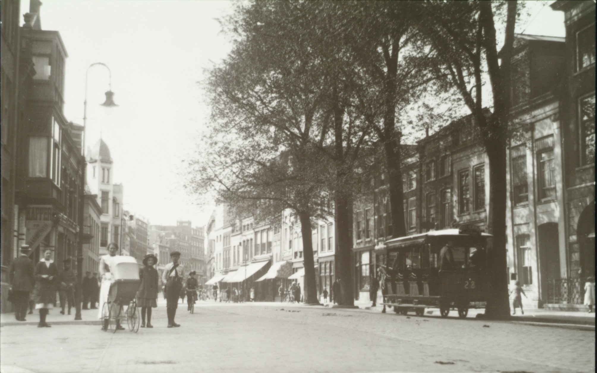 - Rechts de paardentram, links een prachtige kinderwagen