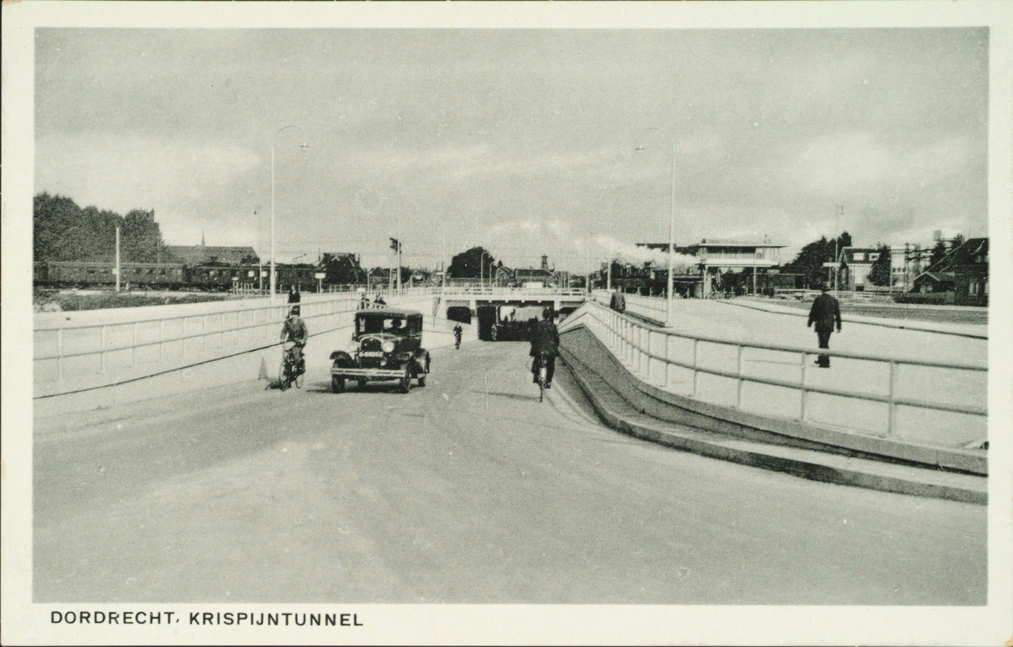 - fietsers locomotieven oldtimers treinen tunnels voetgangers