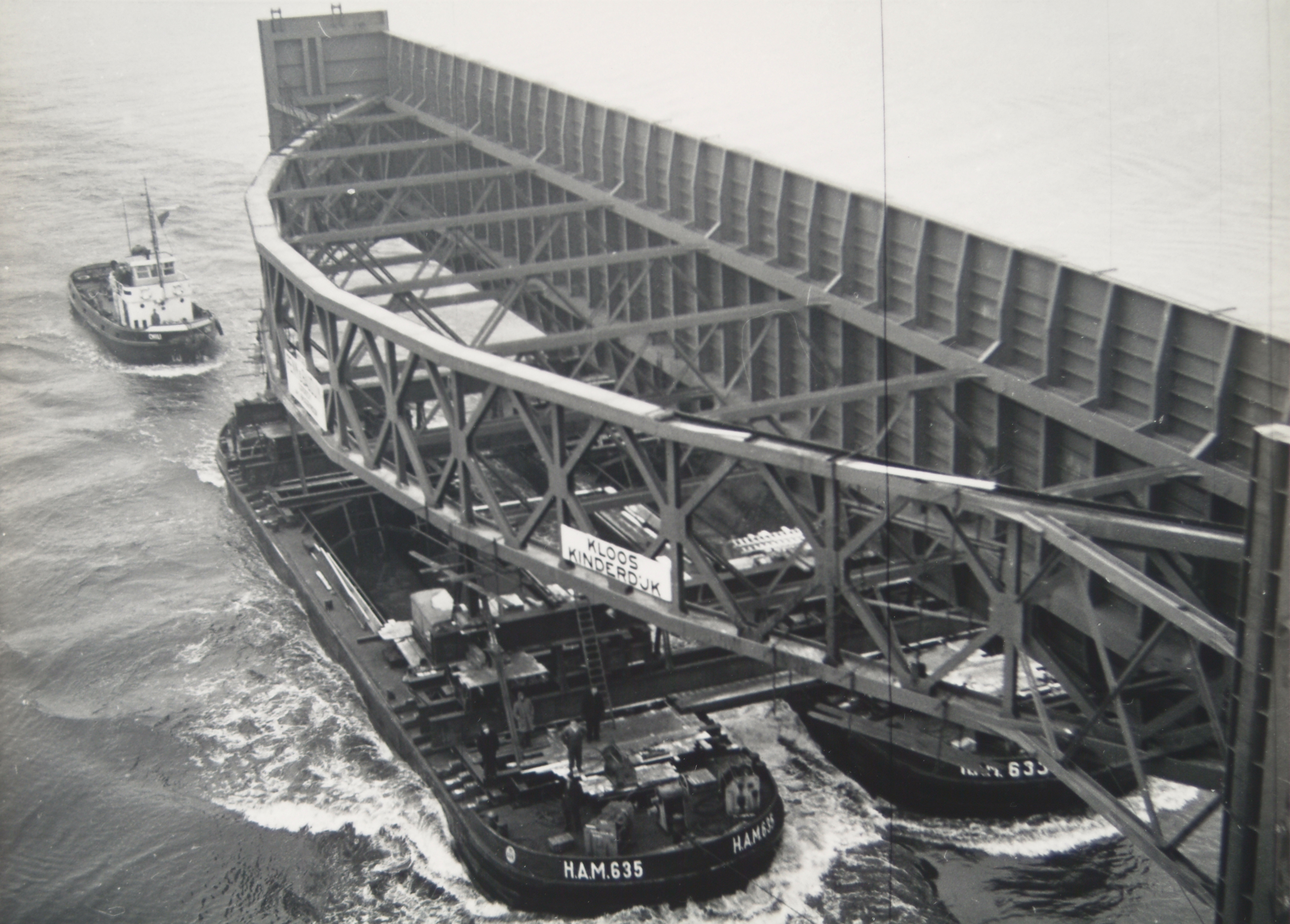 - Vervoer van de stuw in de Hollandse IJssel bij Capelle aan den IJssel. Stuw gebouwd door Penn & Bauduin