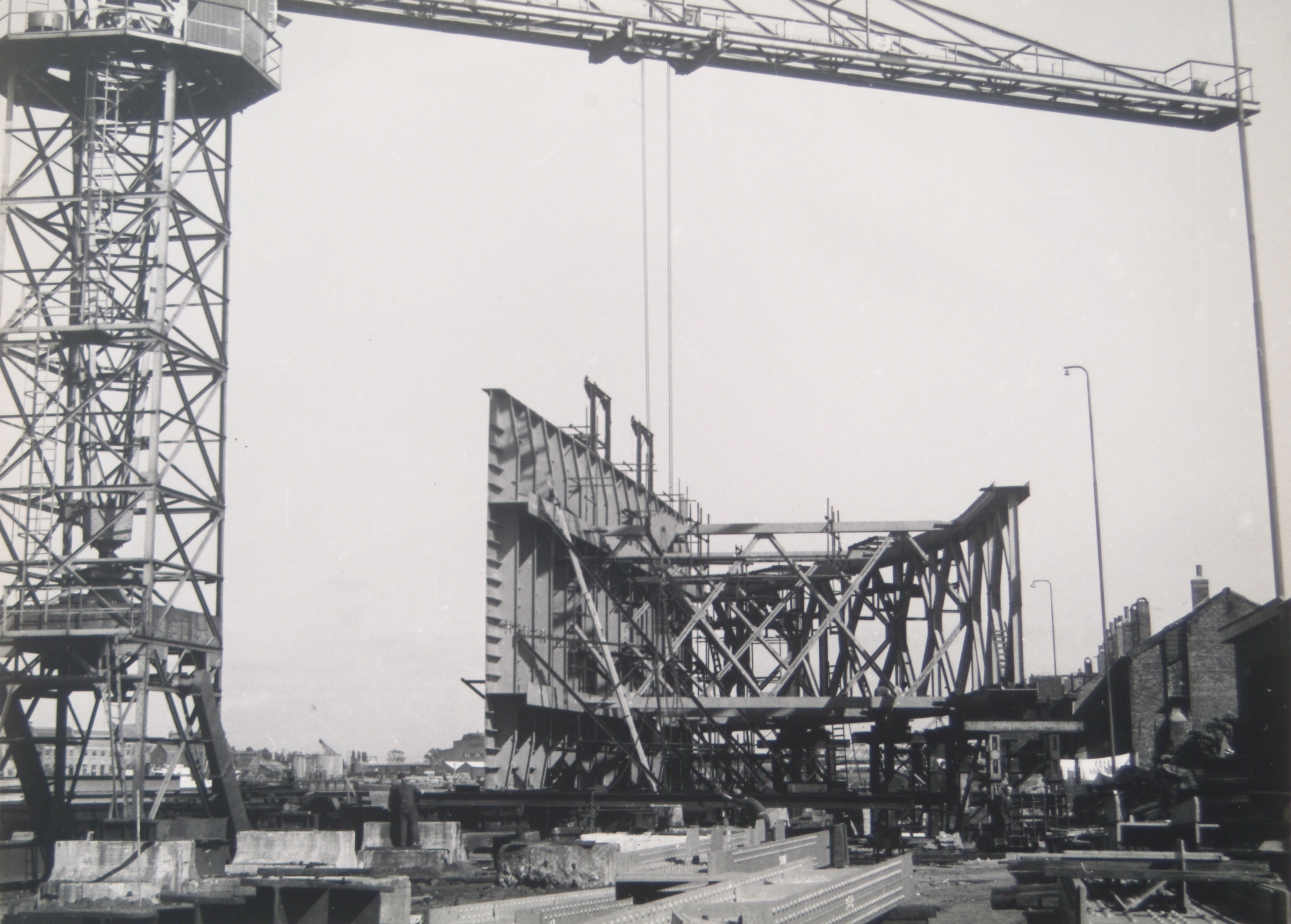 - Bouw van de stuw in de Hollandse IJssel bij Capelle aan den IJssel. Stuw gebouwd door Penn & Bauduin