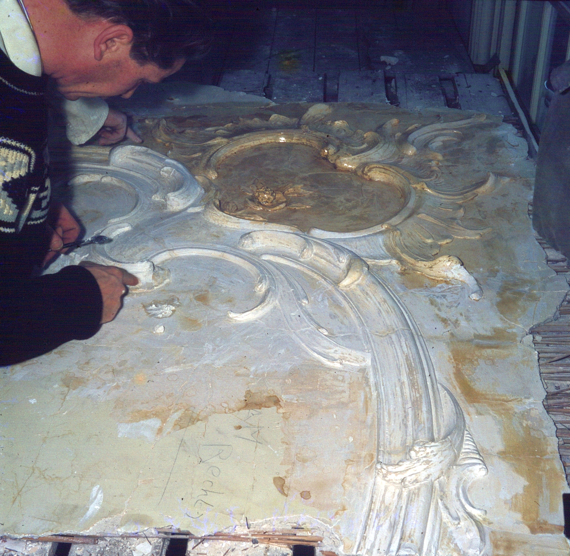 Restauratie-werkzaamheden van ornamenten voor het plafond, voor een vertrek in of bij …