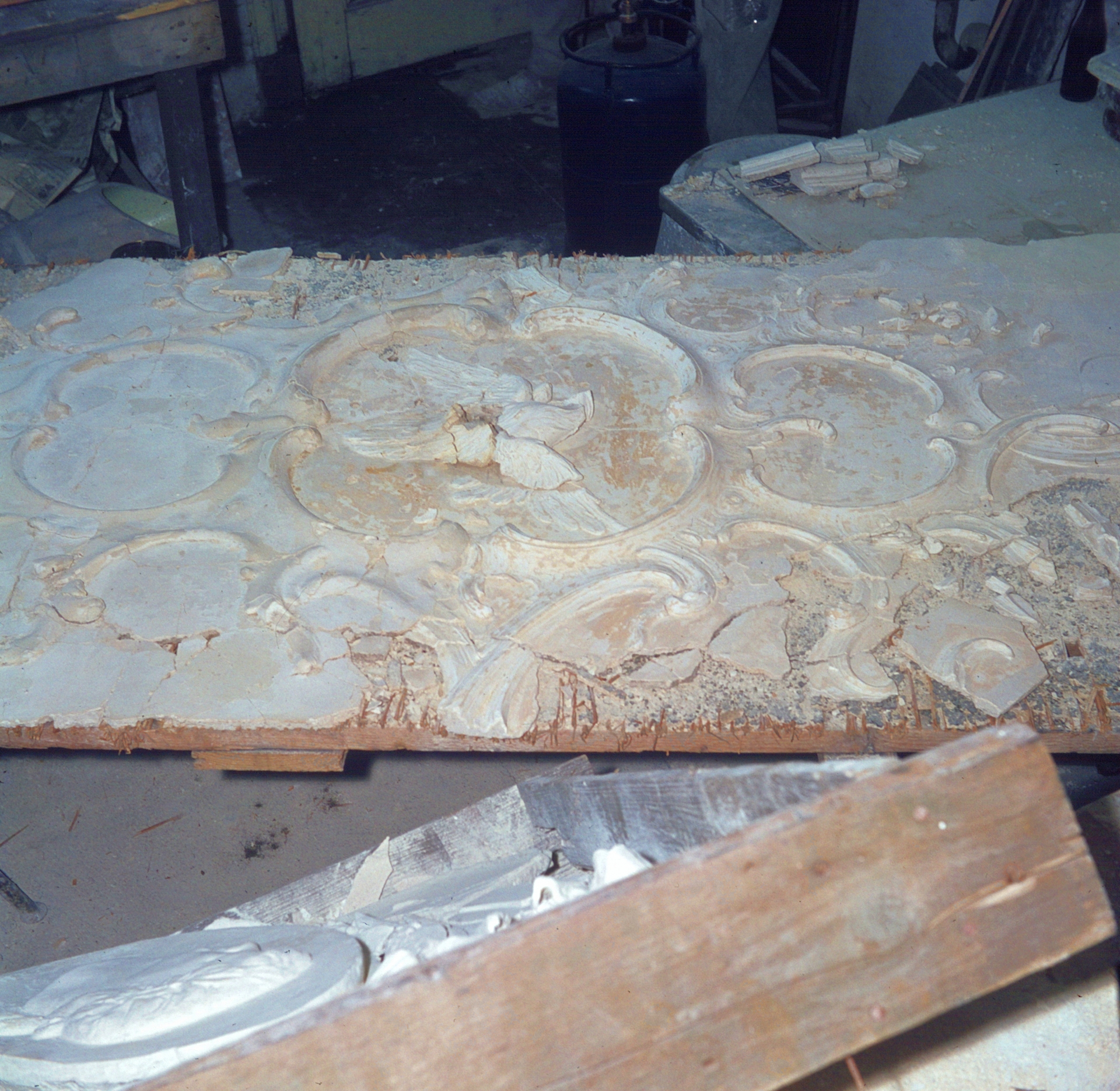 - Restauratie van de ornamenten van een plafond, uit het Rotterdamse huis bij de Grotekerkstoren.