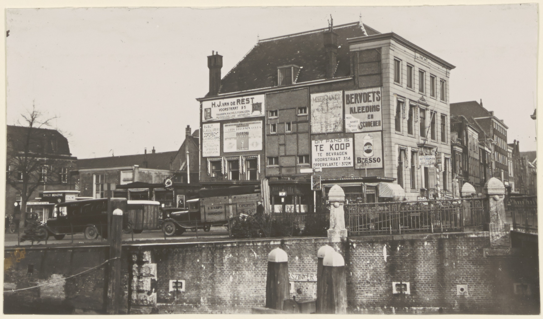 Dus deze foto is van rond die datum daar hij middels een verkoopbord op de zijgevel te koop wordt aangeboden. De huur van de 2 kiosken was in oktober 1933 door de gemeente opgezegd. Het ging om de fruitkiosk van J. Nelemans en de kiosk van de D.M.I.. In mei 1934 opende A. Krijgsman zijn splinternieuwe café annex lunchroom op precies dezelfde plek als waar de kweekschool stond. Dus periode 1932-1933 zou ik dan denken i.p.v. 1918 - 1922. Te bevragen Voorstraat 314 staat er op het bord. Dat is het adres van de heer Harkema (van de ijzerwaren) die in het bestuur van de kweekschool zat.