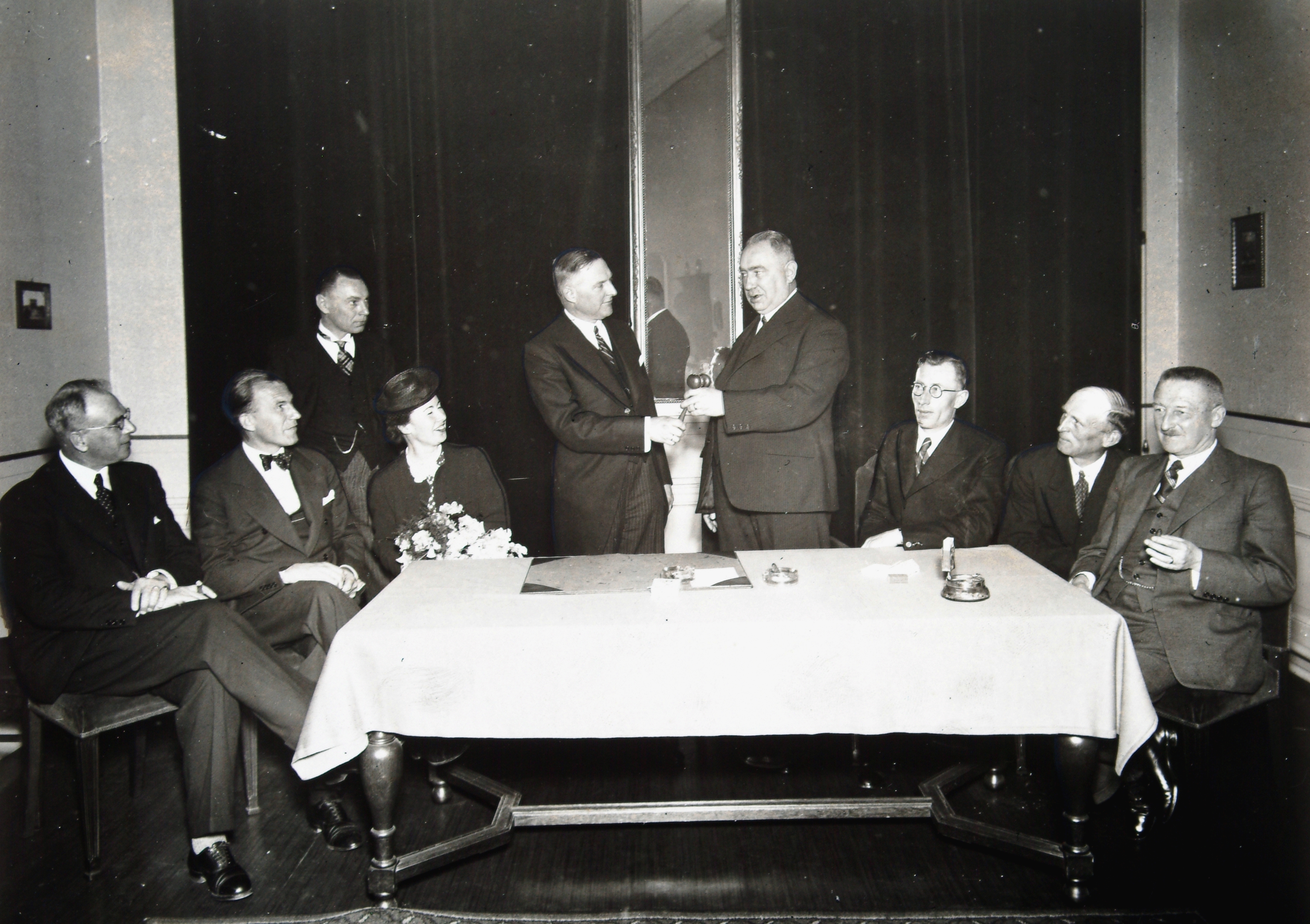 Installatie van Mr. Wildt Meyboom als voorzitter van de Raad van Arbeid.