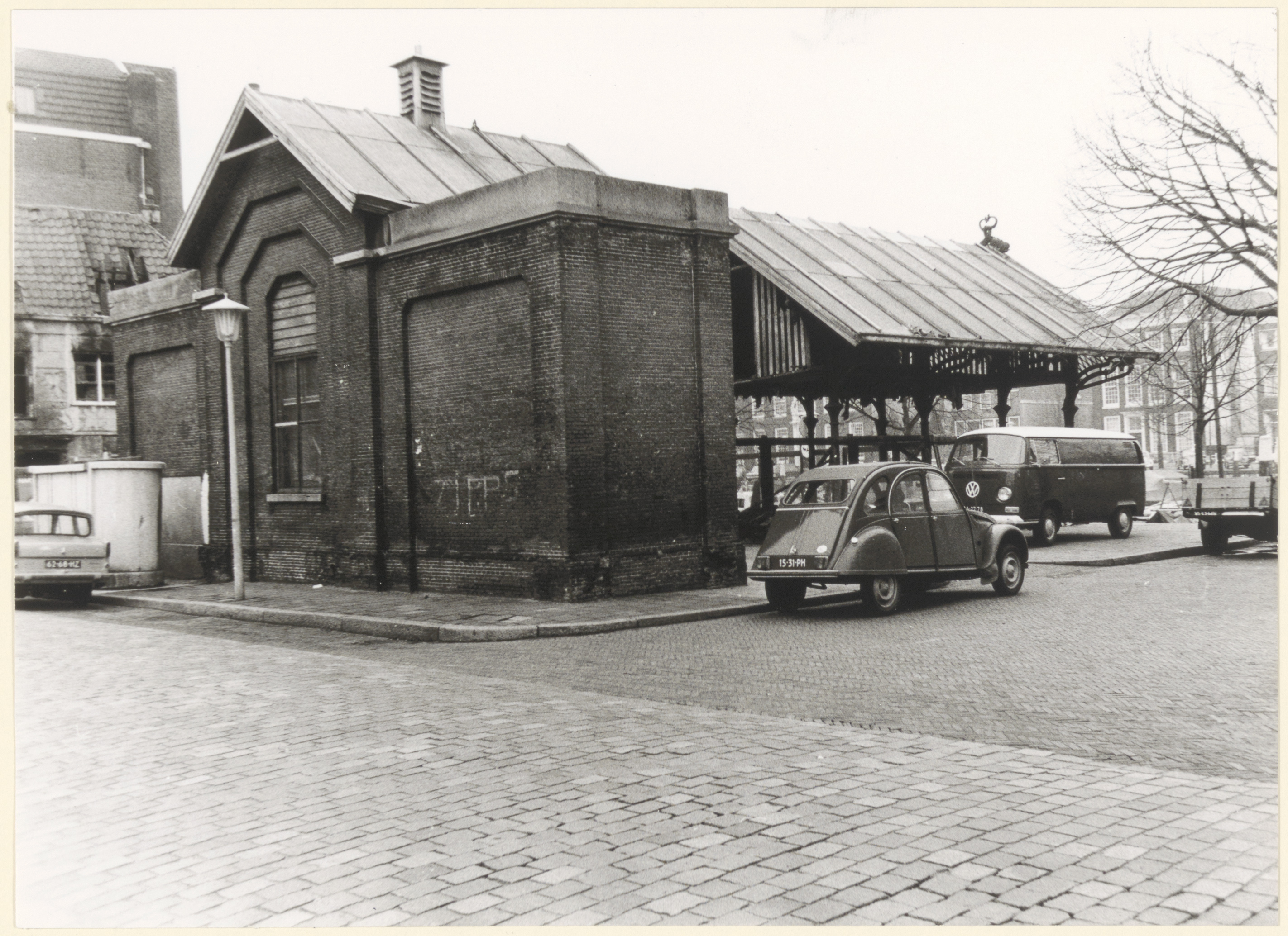 De Vismarkt, gelegen tussen de Varkenmarkt en Knolhaven, gezien vanaf de Varkenmarkt; rechts de Nieuwe Haven.