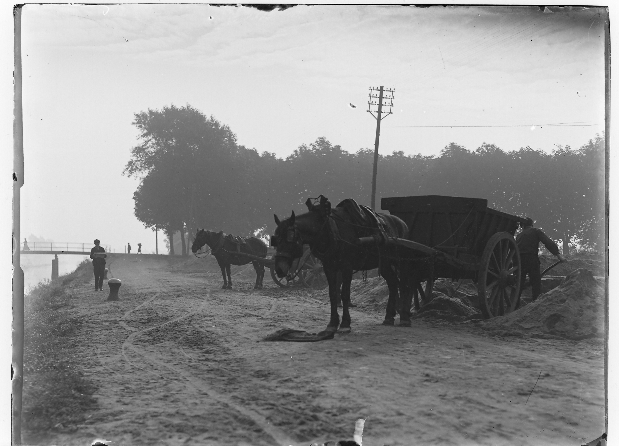 Paard en wagen bij werkzaamheden aan de Kanaaldijk Zuid langs het Eindhovensch kanaal.