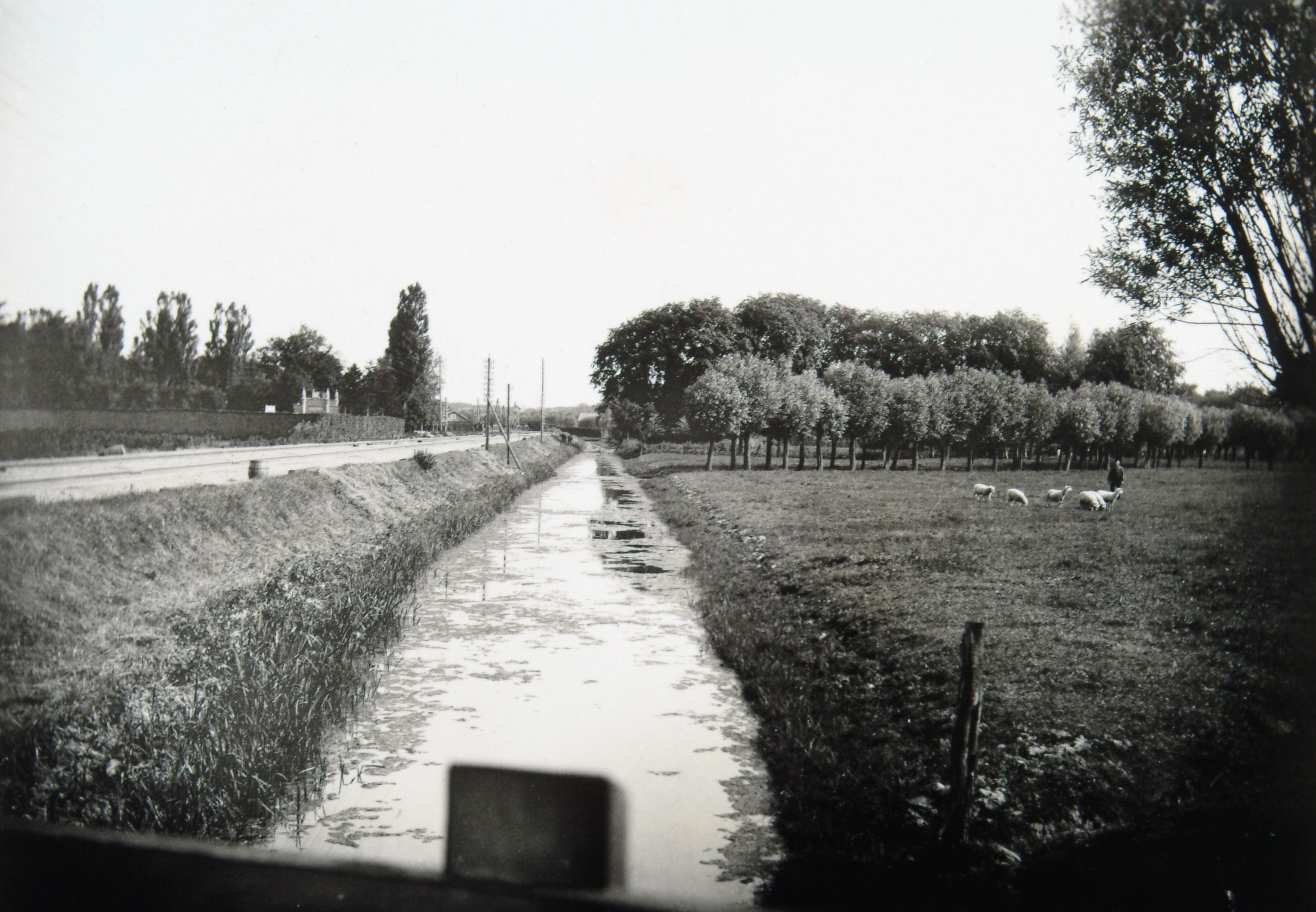 bouwland / landerijen / platteland schapen sloten spoorrails