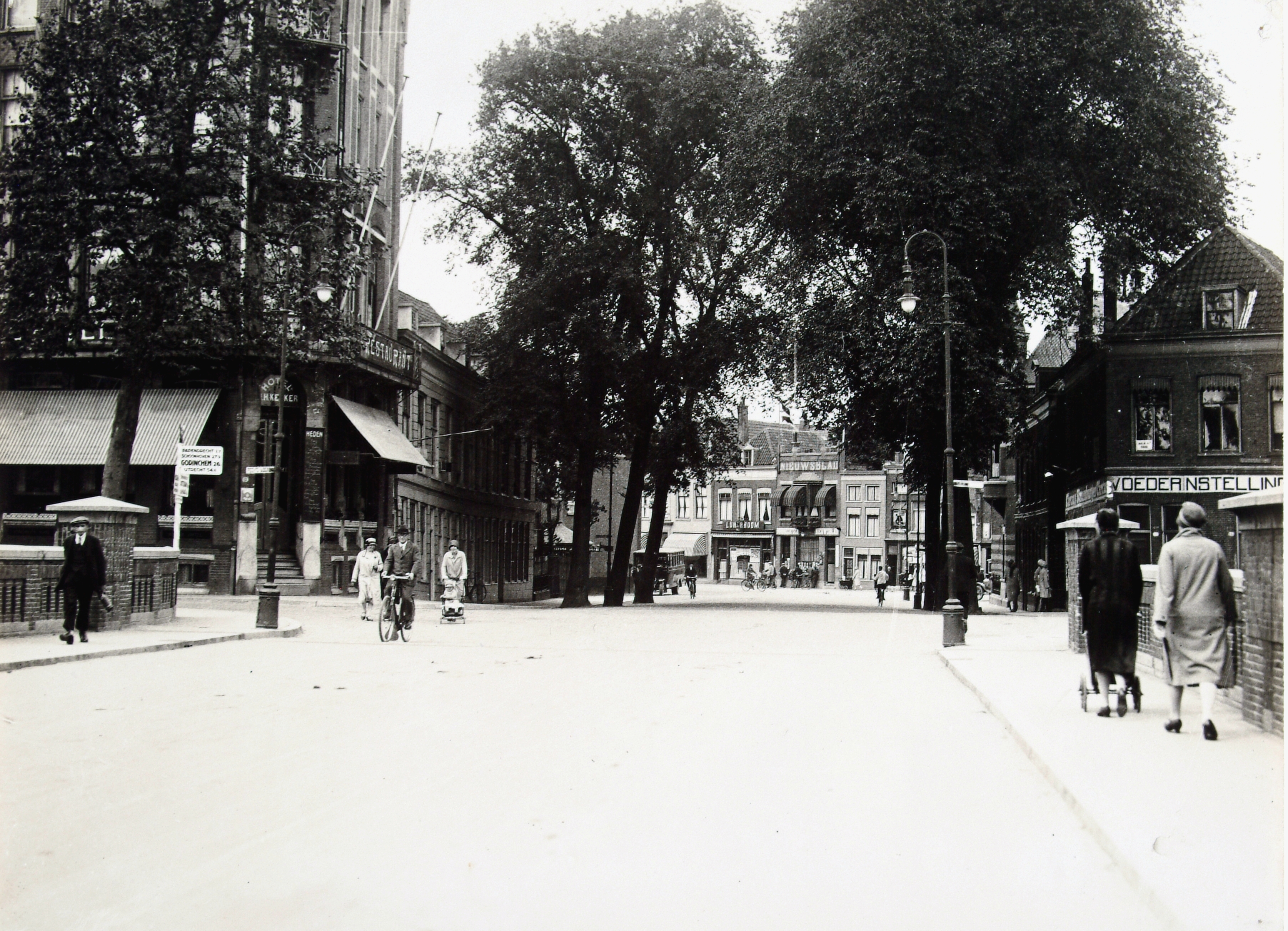 - Vanaf de Johan de Wittbrug eerst de kruising met de Vest, dan de Johan de Wittstraat en op de achtergrond het Bagijnhof.