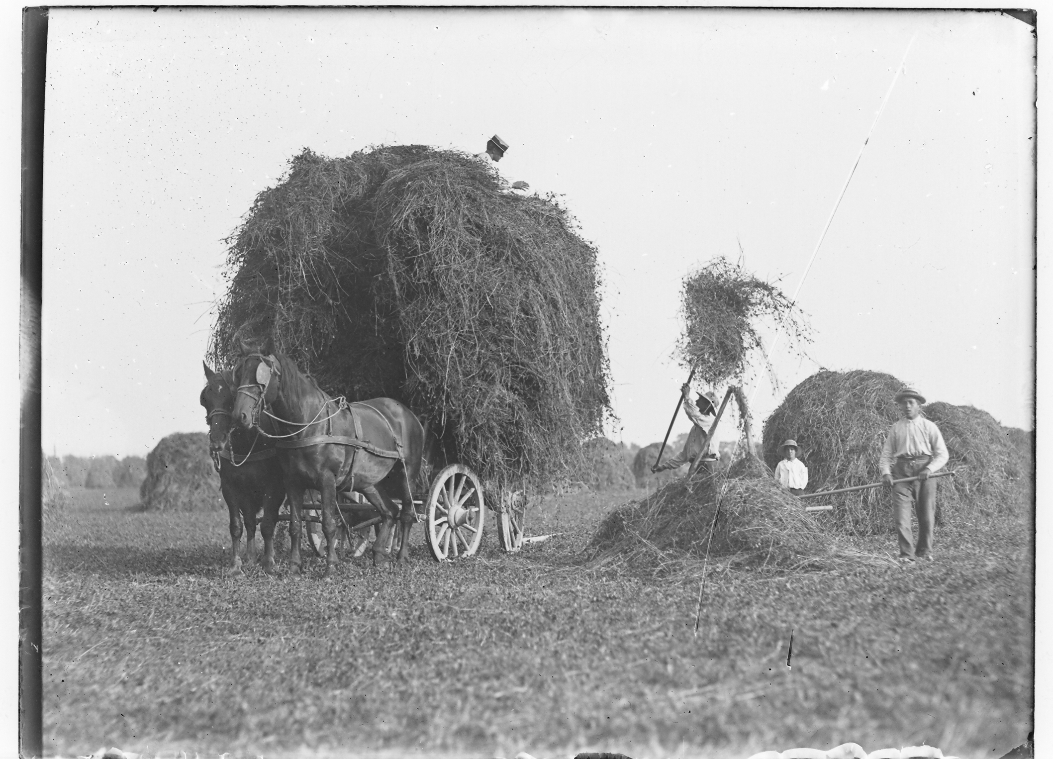 - akkerbouw / landbouw boeren / boerinnen hooibergen hooiwagens landarbeiders paard-en-wagens