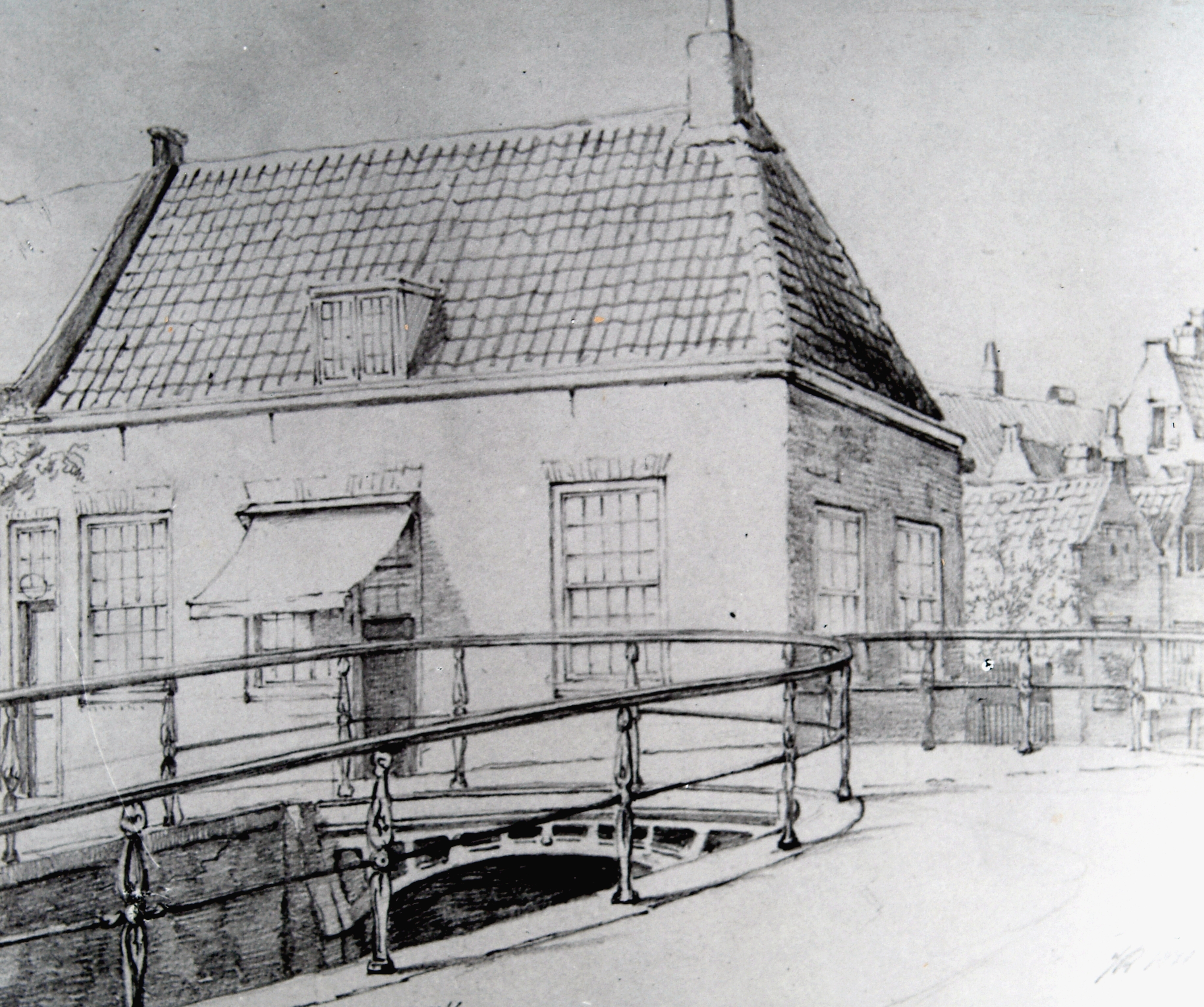 - Brugje over de gracht van het Bagijnhof, rechts van het Oude Vrouwenhuis richting het Achterom. Op deze plek is het Postkantoor gebouwd, dat inmiddels ook weer is afgebroken.