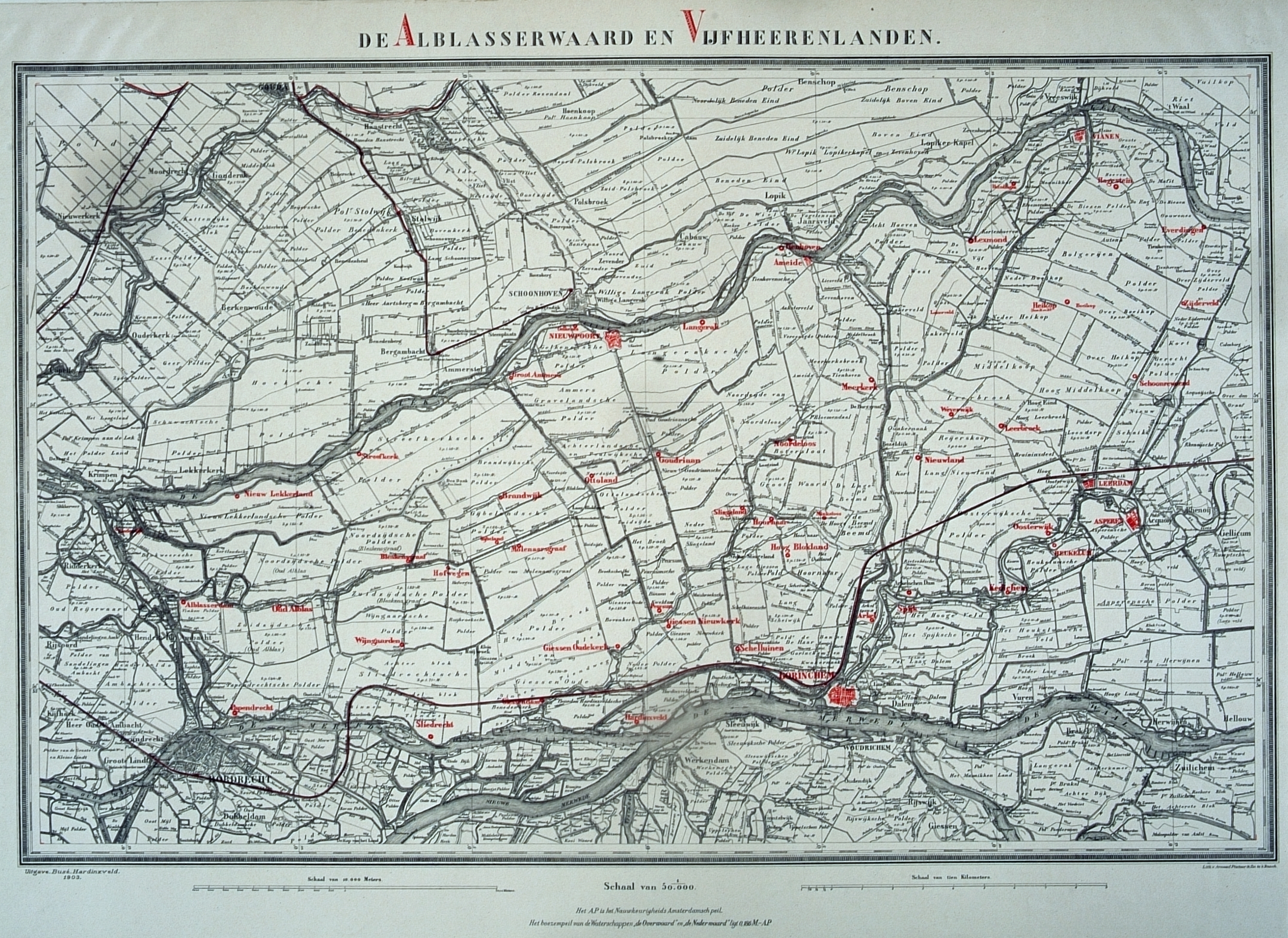 - Topografische kaart van de Alblasserwaard. en Vijf Heerenlanden en een deel van het Eiland van Dordrecht, de Zwijndrechtse Waard en de Krimpenerwaard.