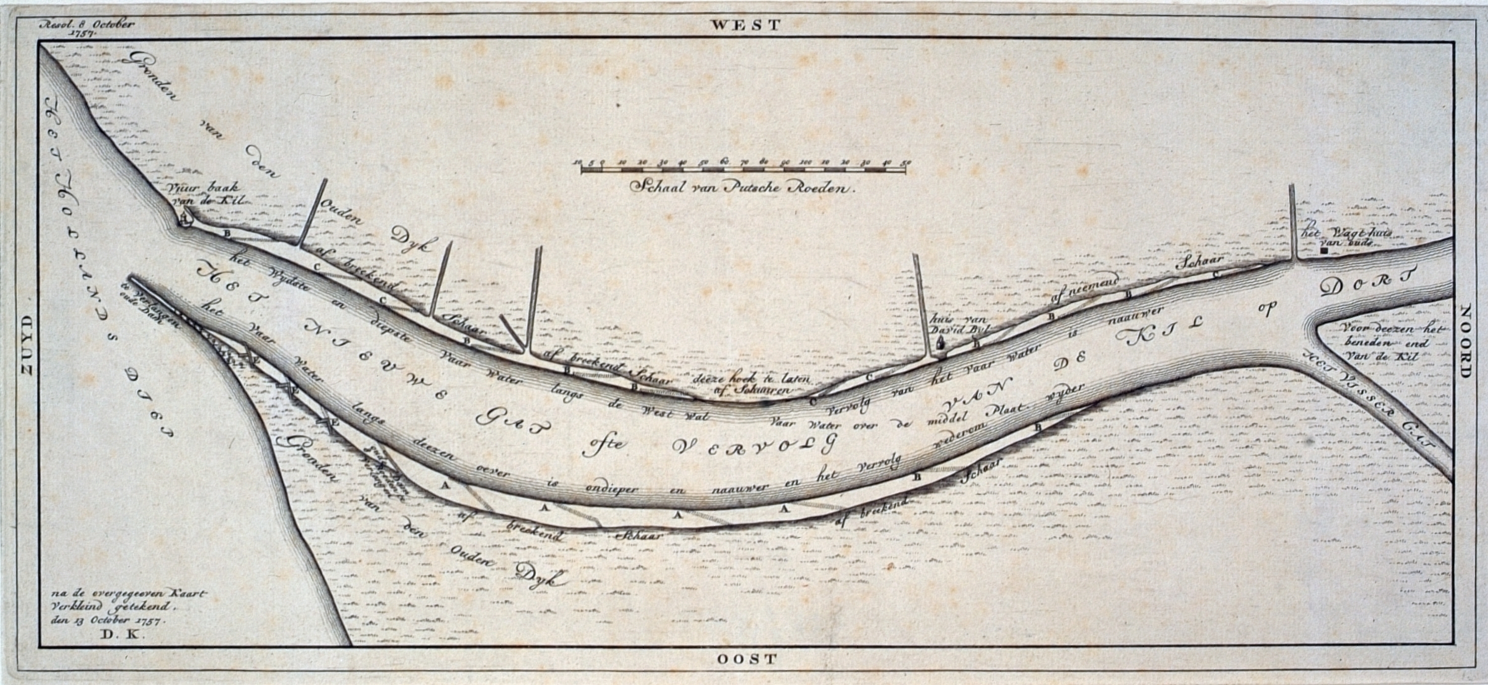 Rivierkaart van het zuidelijkste deel van de Dordtsche Kil tussen Vissersgat en …
