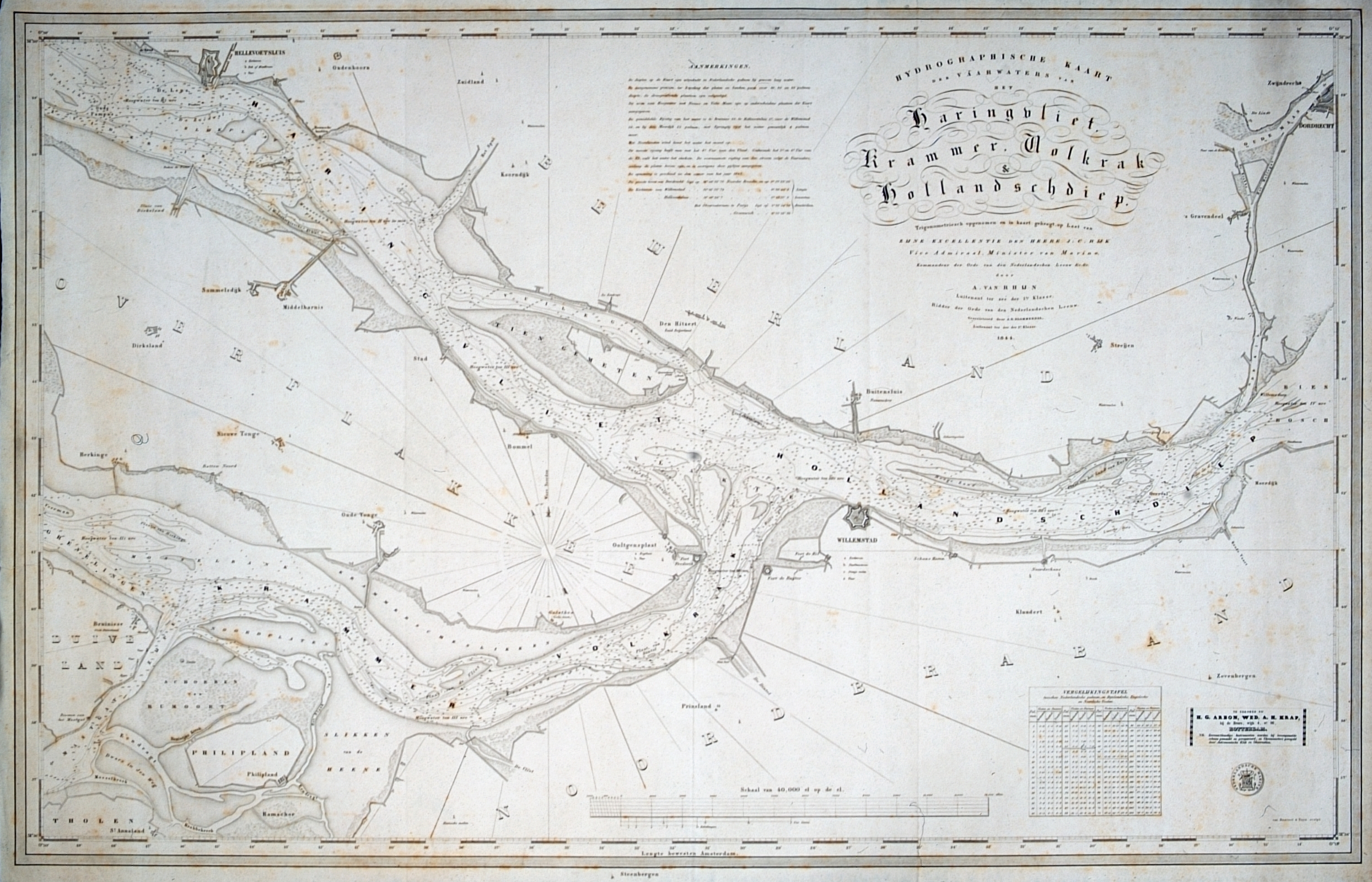 - Dordtsche Waterweg naar Zee. Hydrografische kaart van de vaarwaters Haringvliet, Krammer, Volkerak en Hollandsch Diep (de waterweg van Dordrecht naar zee), trigonometrisch opgenomen en in kaart gebracht door A. van Rhijn met assistentie van A.H. Blommendal.
