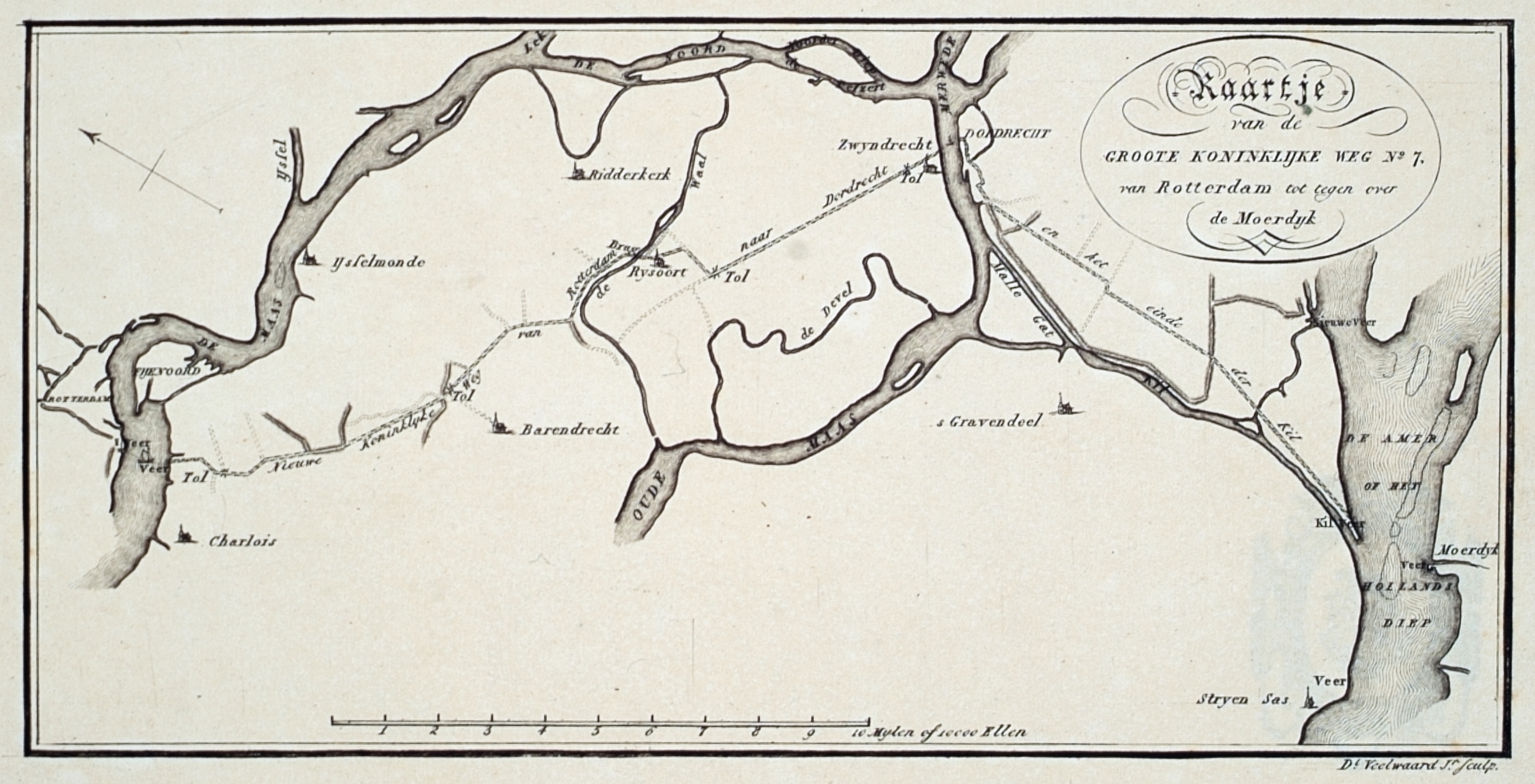 - Kaartje van de Groote Koninklijke Weg n°. 7 van Rotterdam [over Dordrecht] tot tegenover de Moerdijk. Schaal 10.000 ellen.