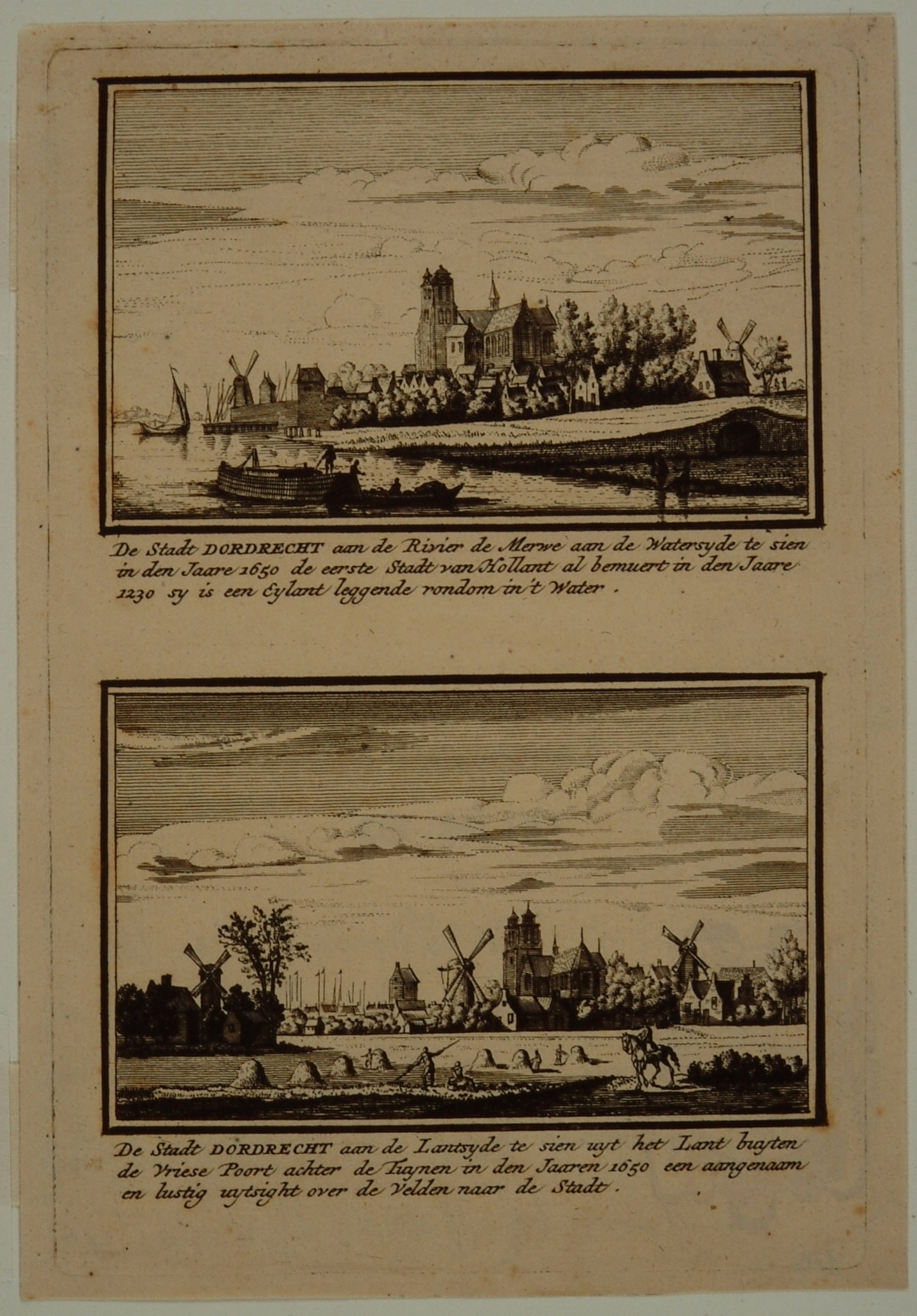 Twee gezichten op Dordrecht vanaf de water- en landzijde omstreeks 1650