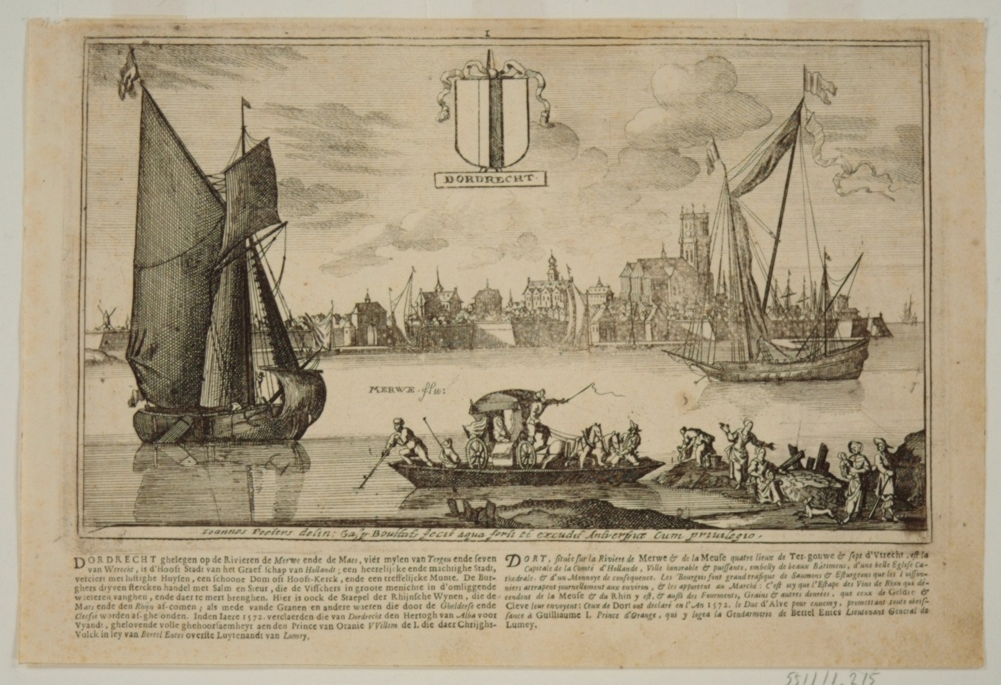 Naar een tekening van Joannes Peeters. Late afgesleten afdruk met beschrijving in het Frans en Hollands
