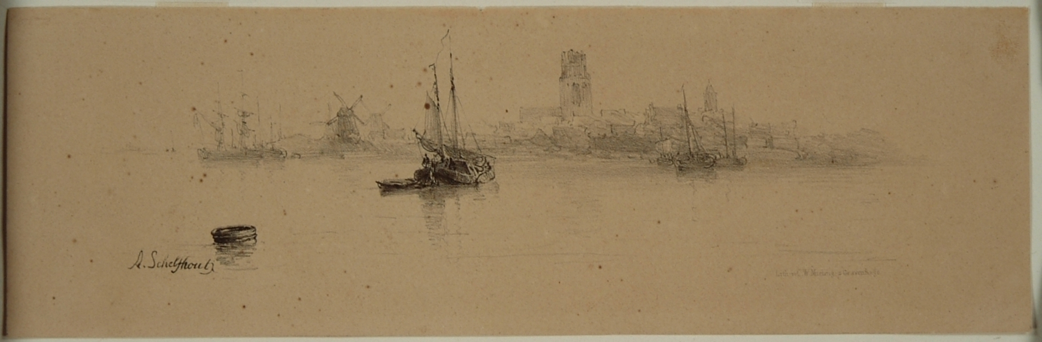 - Gezicht op Dordrecht vanaf Zwijndrecht, ca. 1850