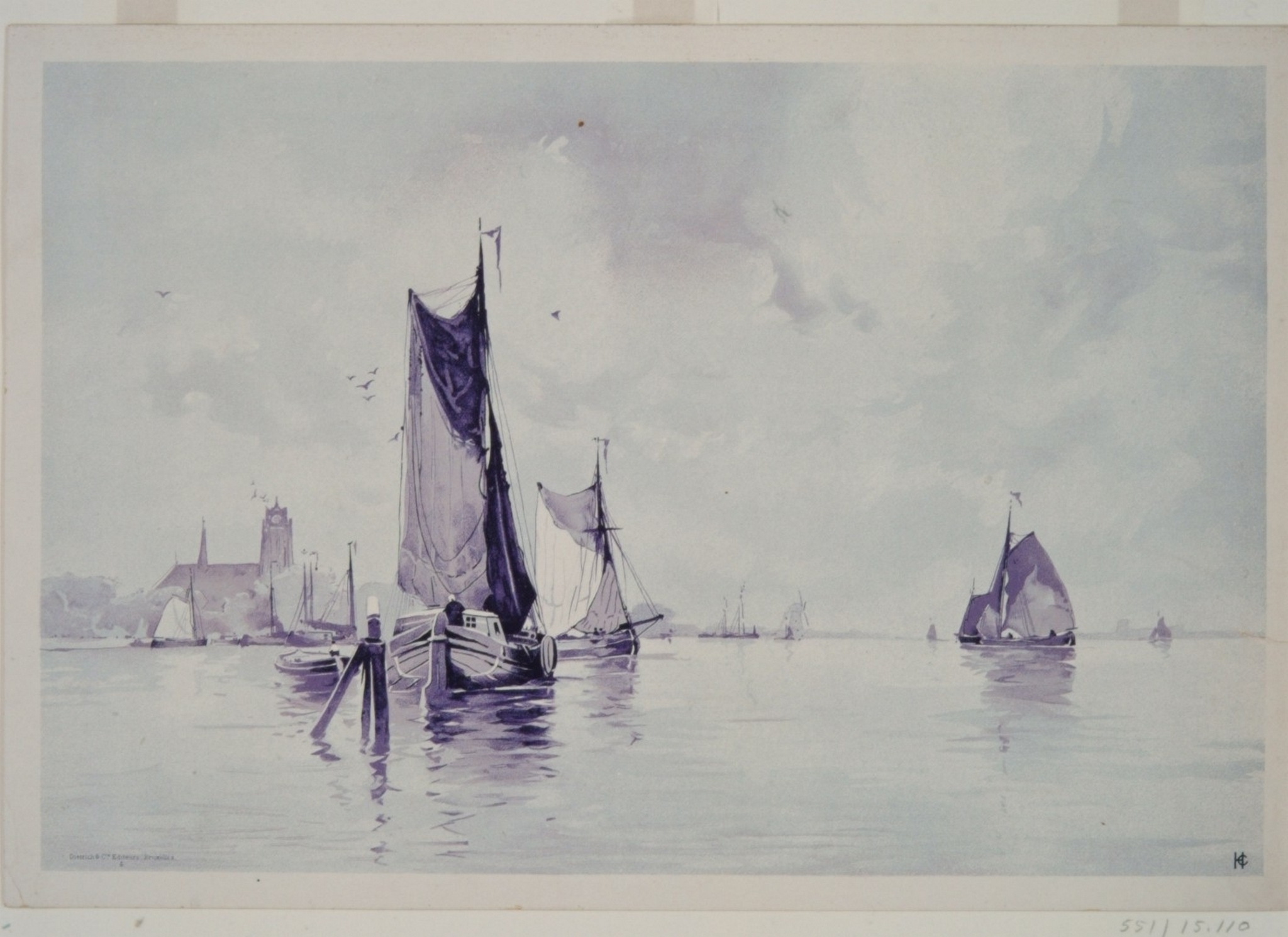 - Gezicht op de Oude Maas en de stad uit de richting van de Noord met links de Grote Kerk.