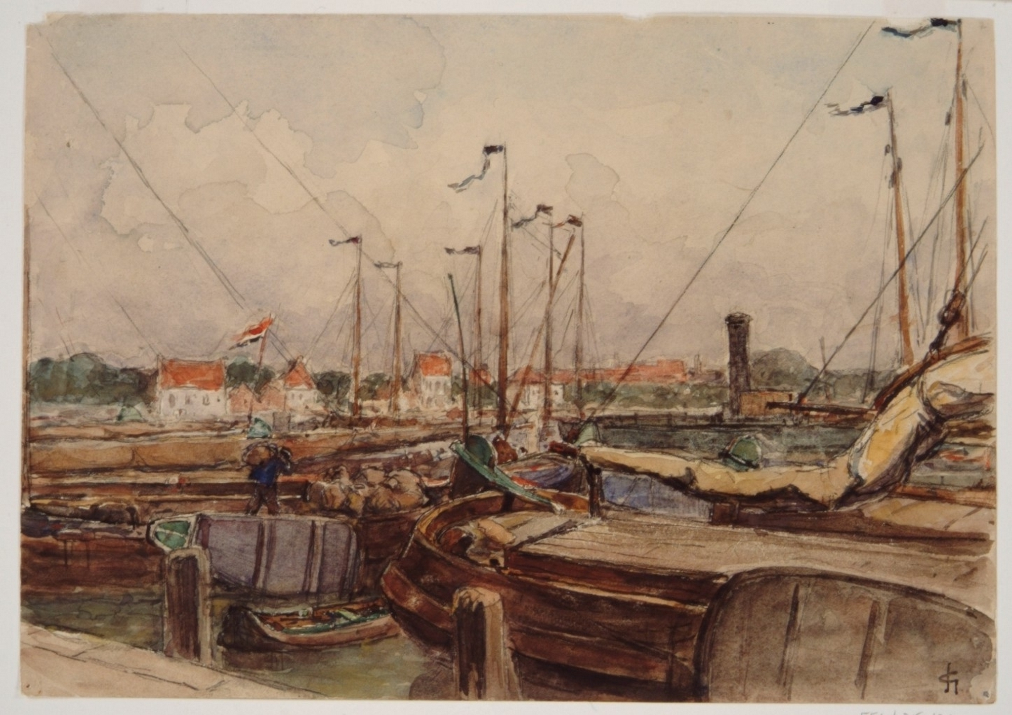 - Marktschepen in de Bom met op de achtergrond Zwijndrecht, anno 1887