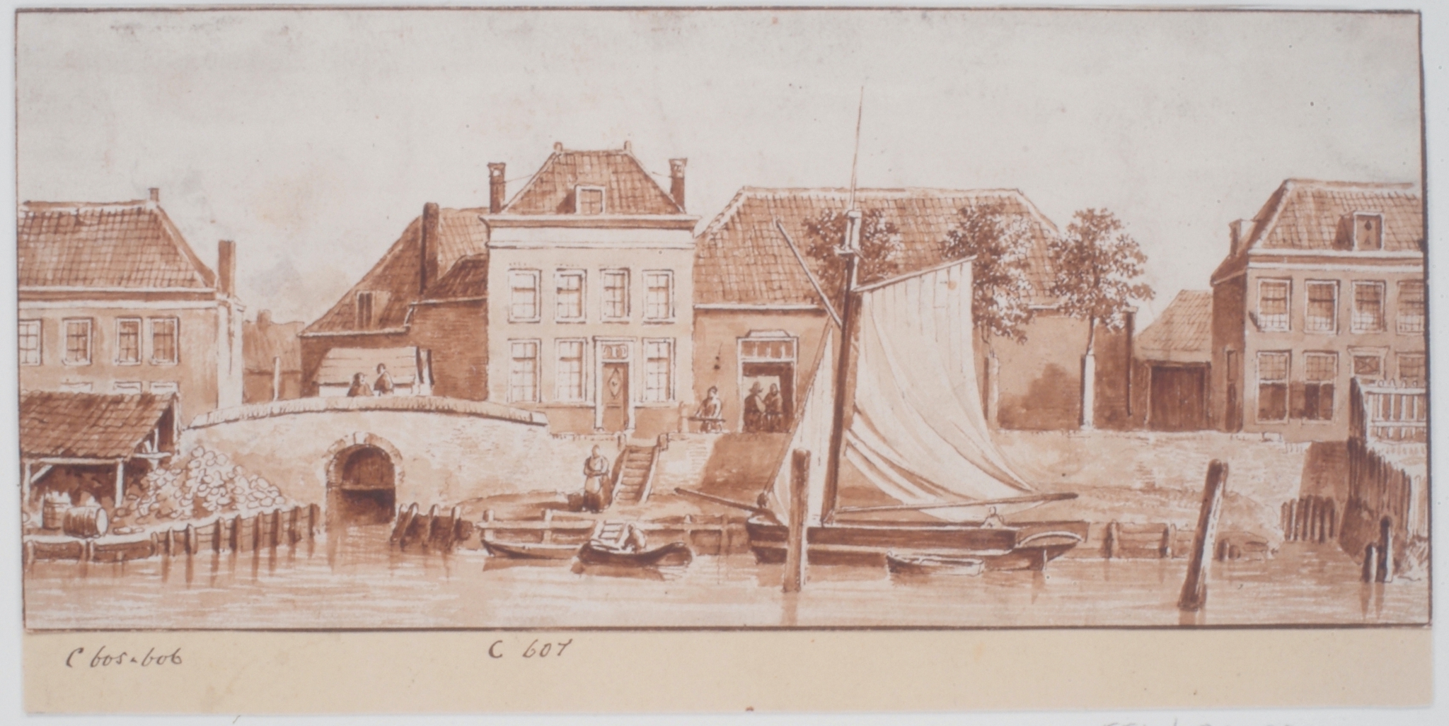 - Gezicht vanuit de Riedijkshaven op de Snellesluis, een spuisluis voor de binnengrachten, en op enkele huizen aan de Vest