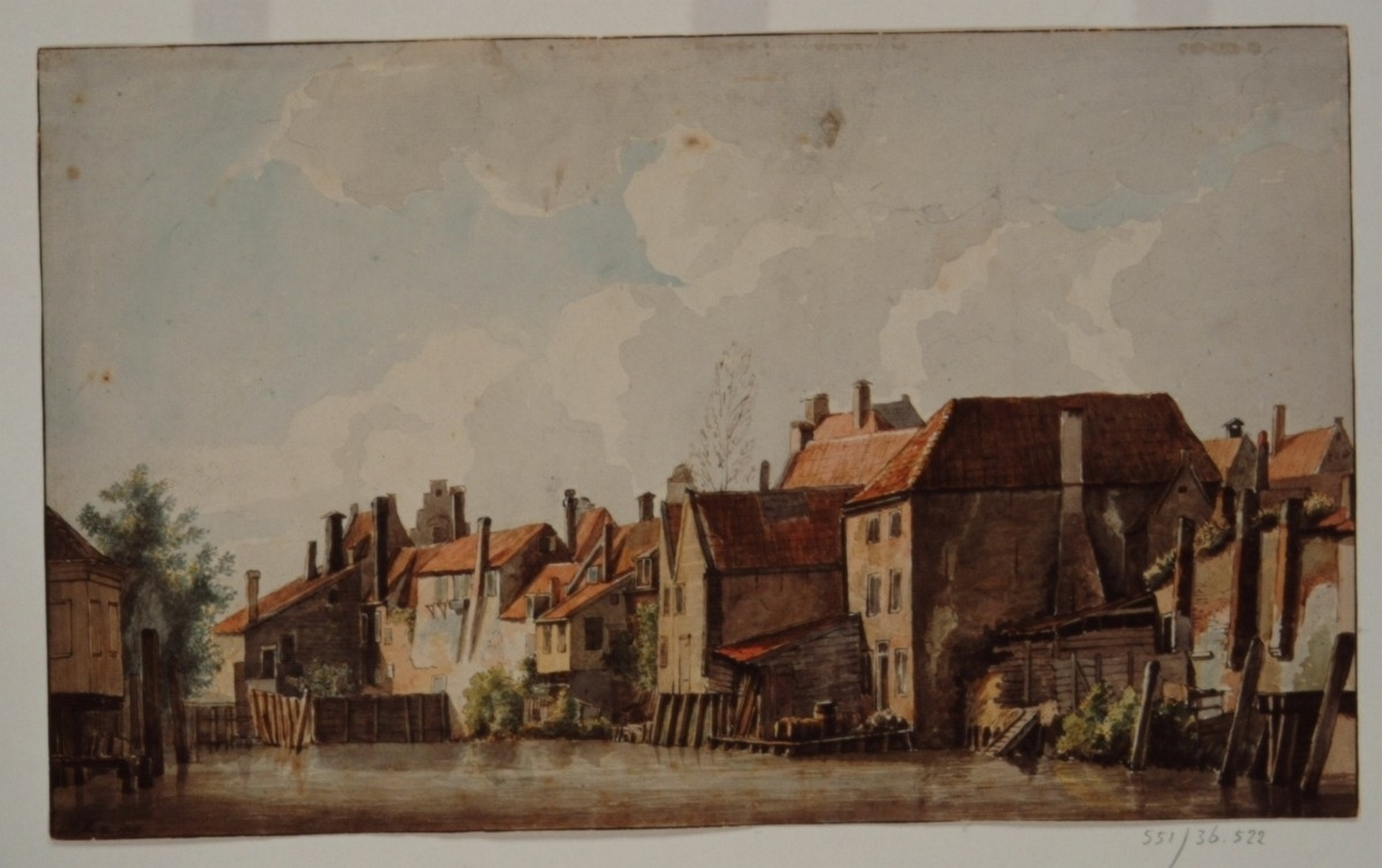 - Spuihaven, anno 1832; met achterzijde van de huizen aan het Slikveld, tot aan de Boogjes
