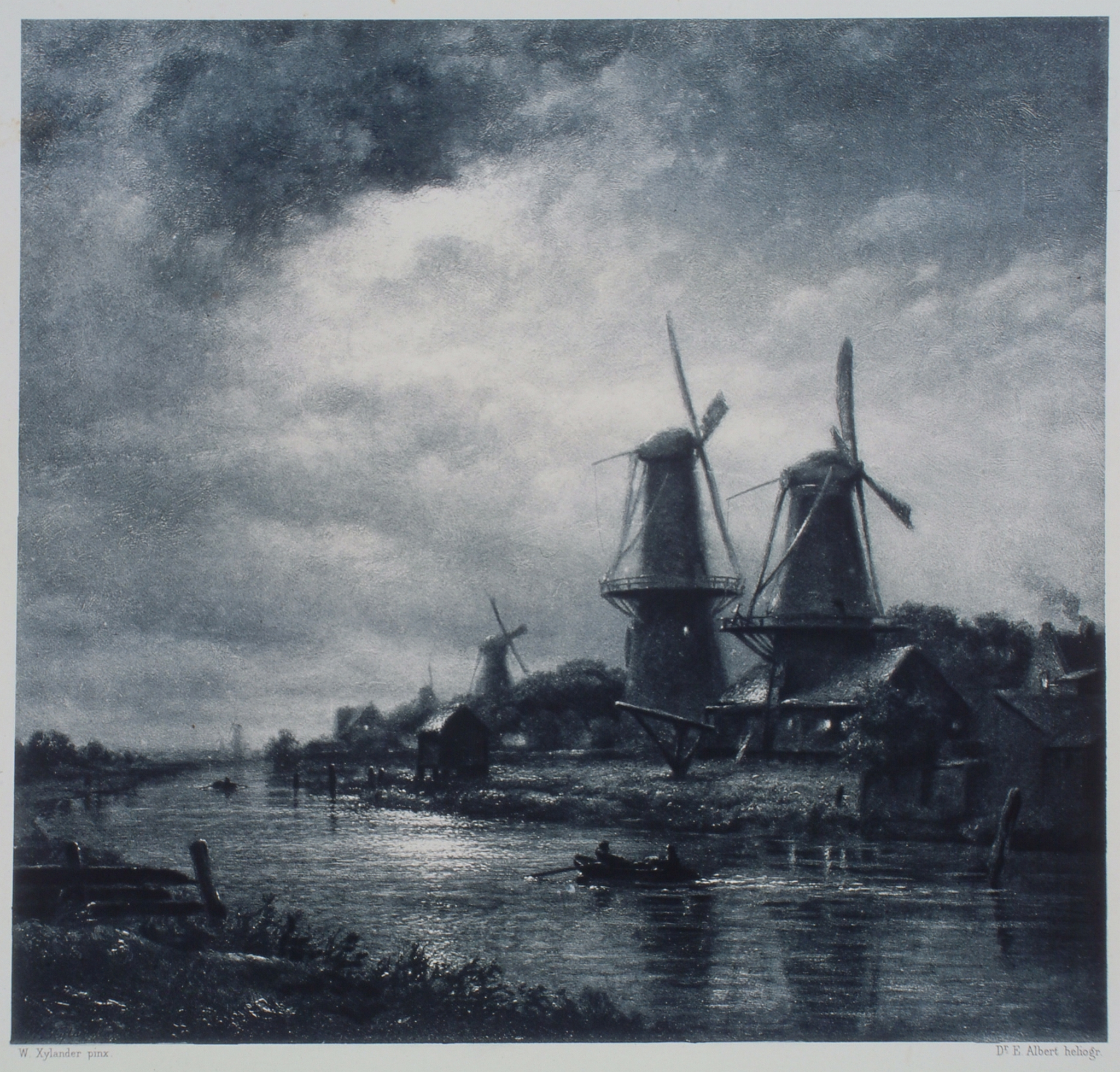 - Die Mühlen bei Dordrecht; heliogravure door E. Albert naar een schilderij van W. Xylander; afmetingen: Hg. 23.2, br. 24.6 c.