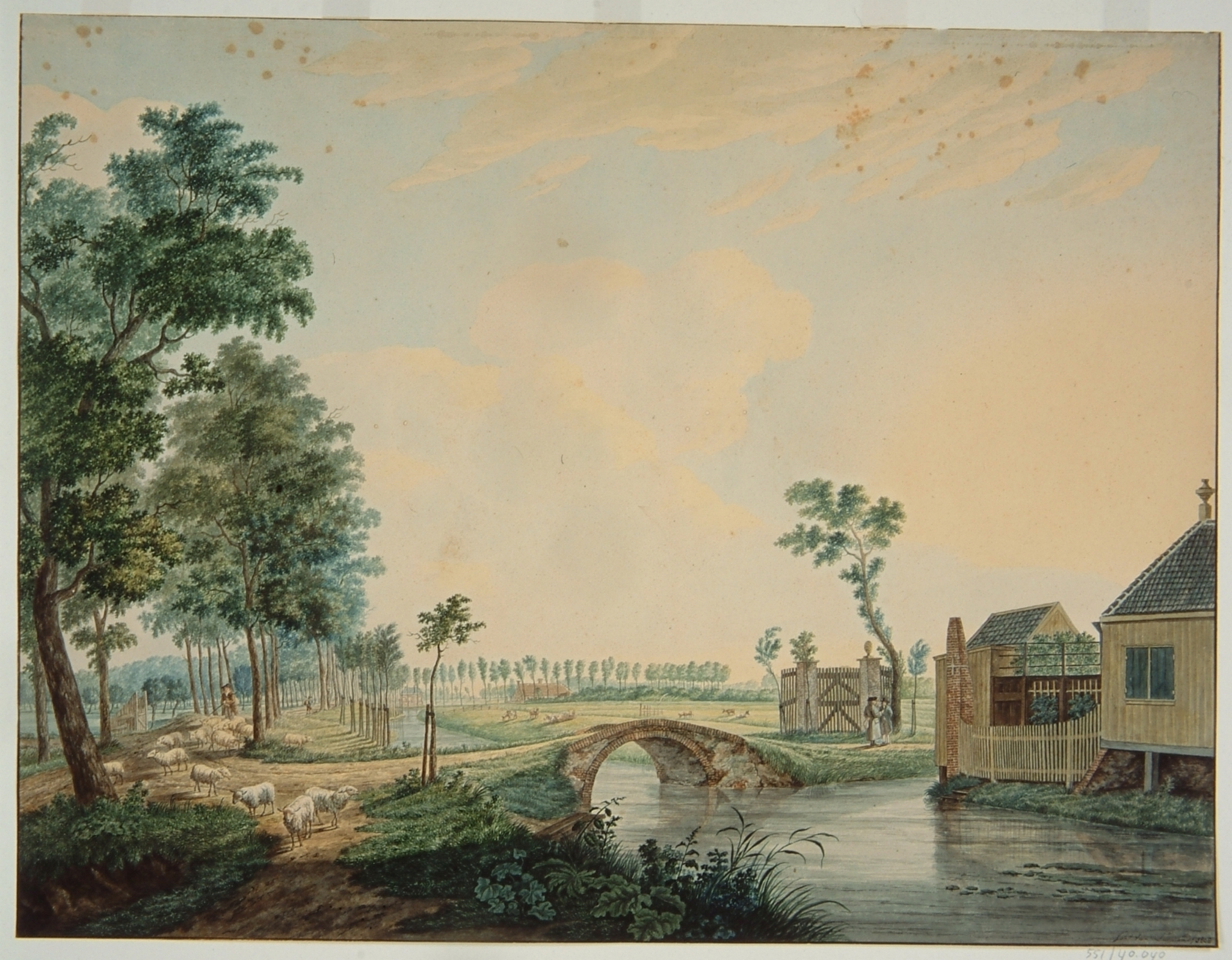 - Gezicht op de ingang van de Markettenweg of Bonenpad, de heul aldaar en de poort der eind achttiende eeuw gesloopte buitenplaats het Huis te Dubbeldam.