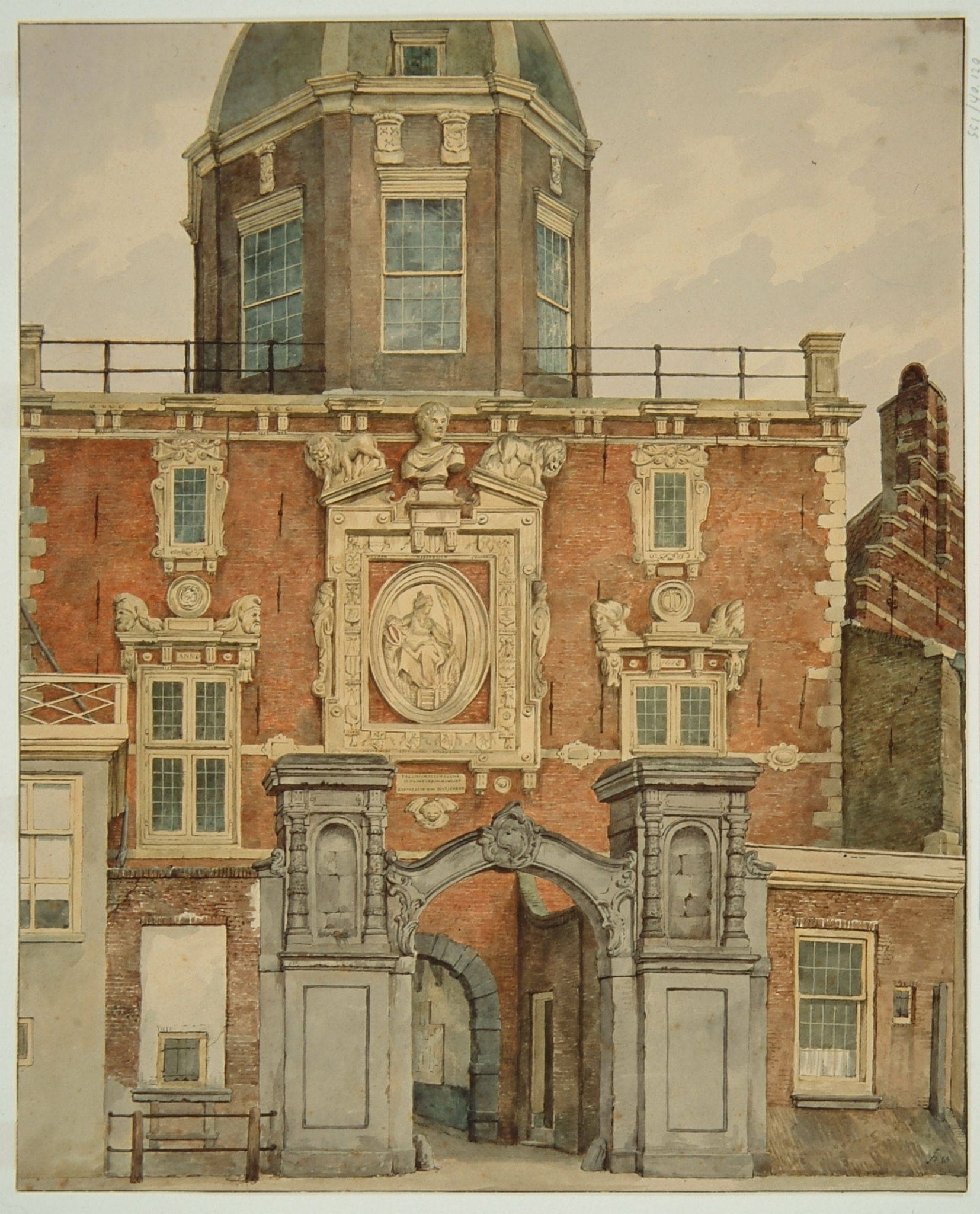 - Afmetingen: Hg. 54, br. 43.5 c. Nota Bene: Ofschoon gedateerd 1843 werd deze tekening eerst omstreeks 1870 vervaardigd.