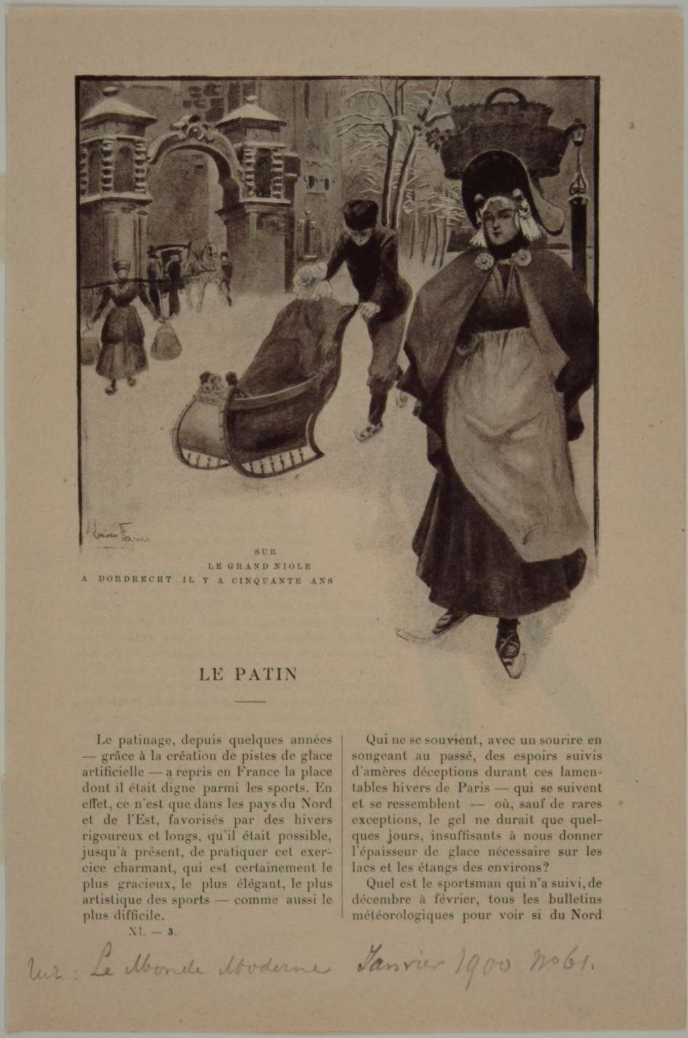 - Vóórgedeelte van Groothoofdspoort anno 1900. Sur le grand niole (môle?) à Dordrecht, il y a cinquante ans. . Rechts vooraan, een Scheveningse visvrouw op schaatsen!