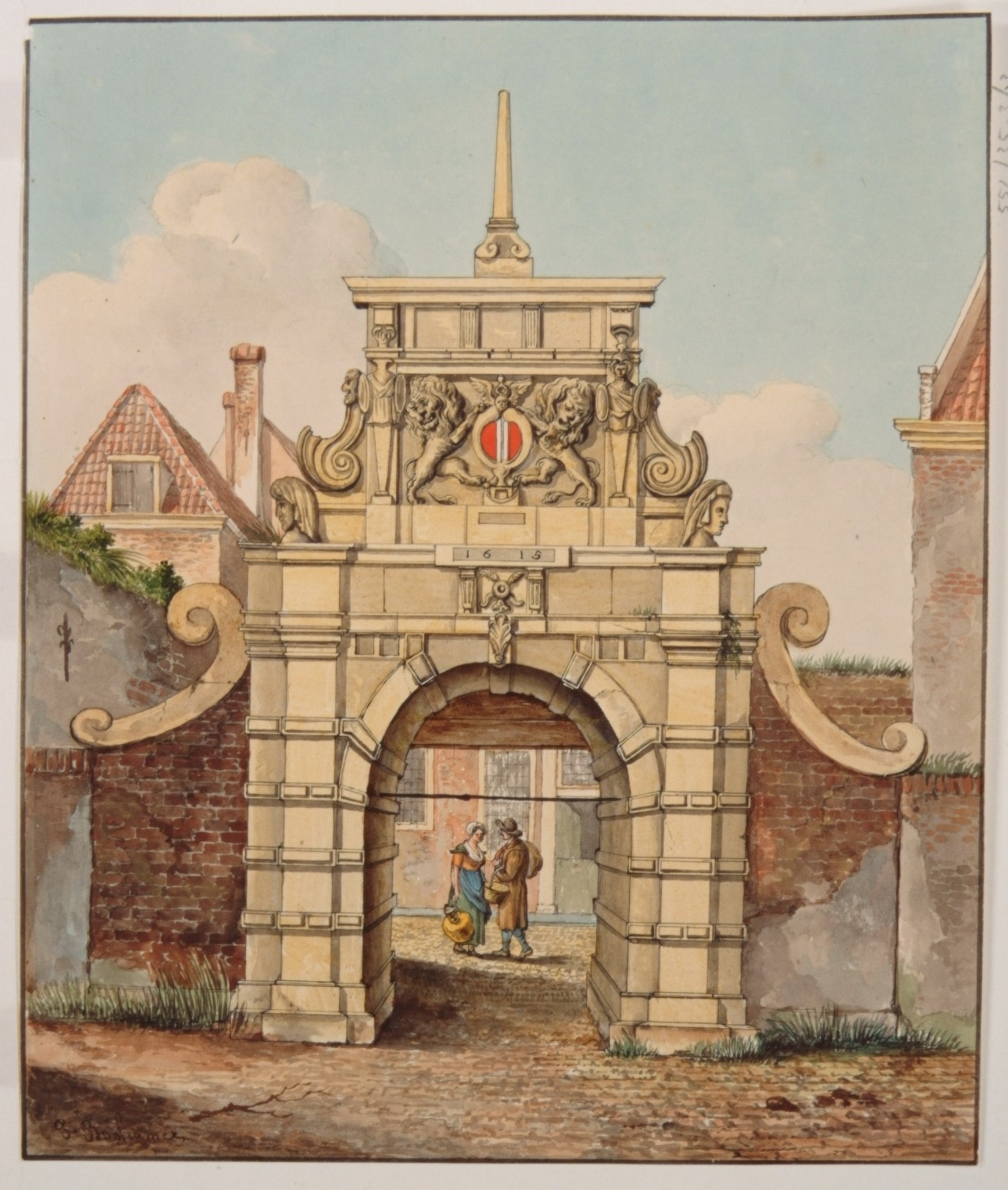 Melkpoortje met gefantaseerde achtergrond, omstreeks 1833