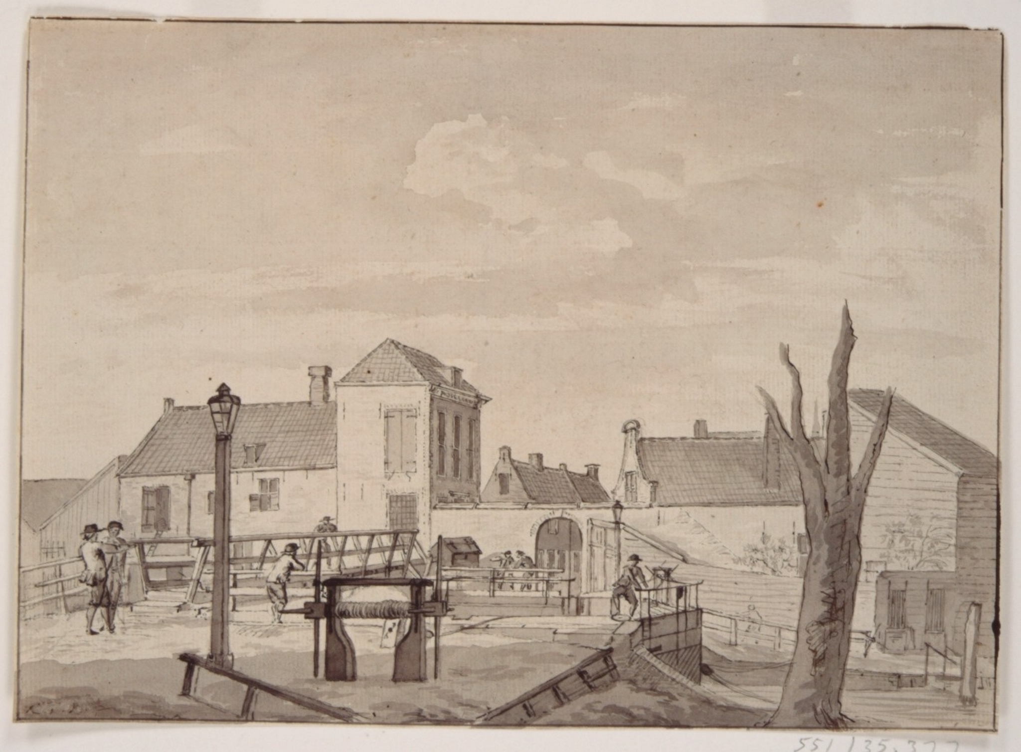 Noorderpoort (ook wel genoemd Kleine Sluispoort) met loopbrug en sluis, anno 1783; gezien vanaf Noordendijk