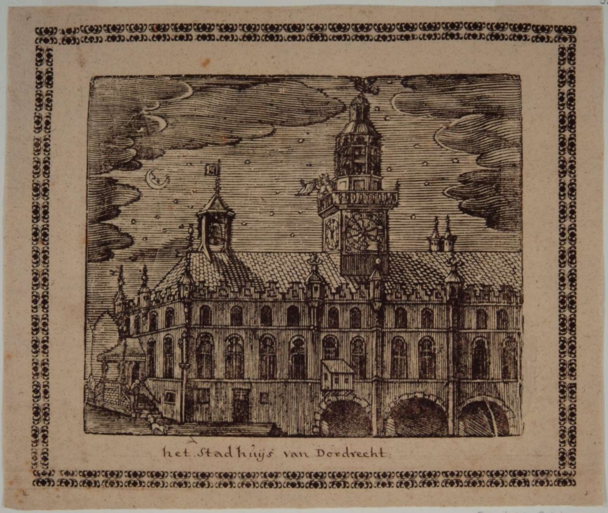 - Stadhuis, midden 17e eeuw. Hetzelfde plaatje als DI 1049; vroegere, minder afgesleten, druk, omgeven met een rand.