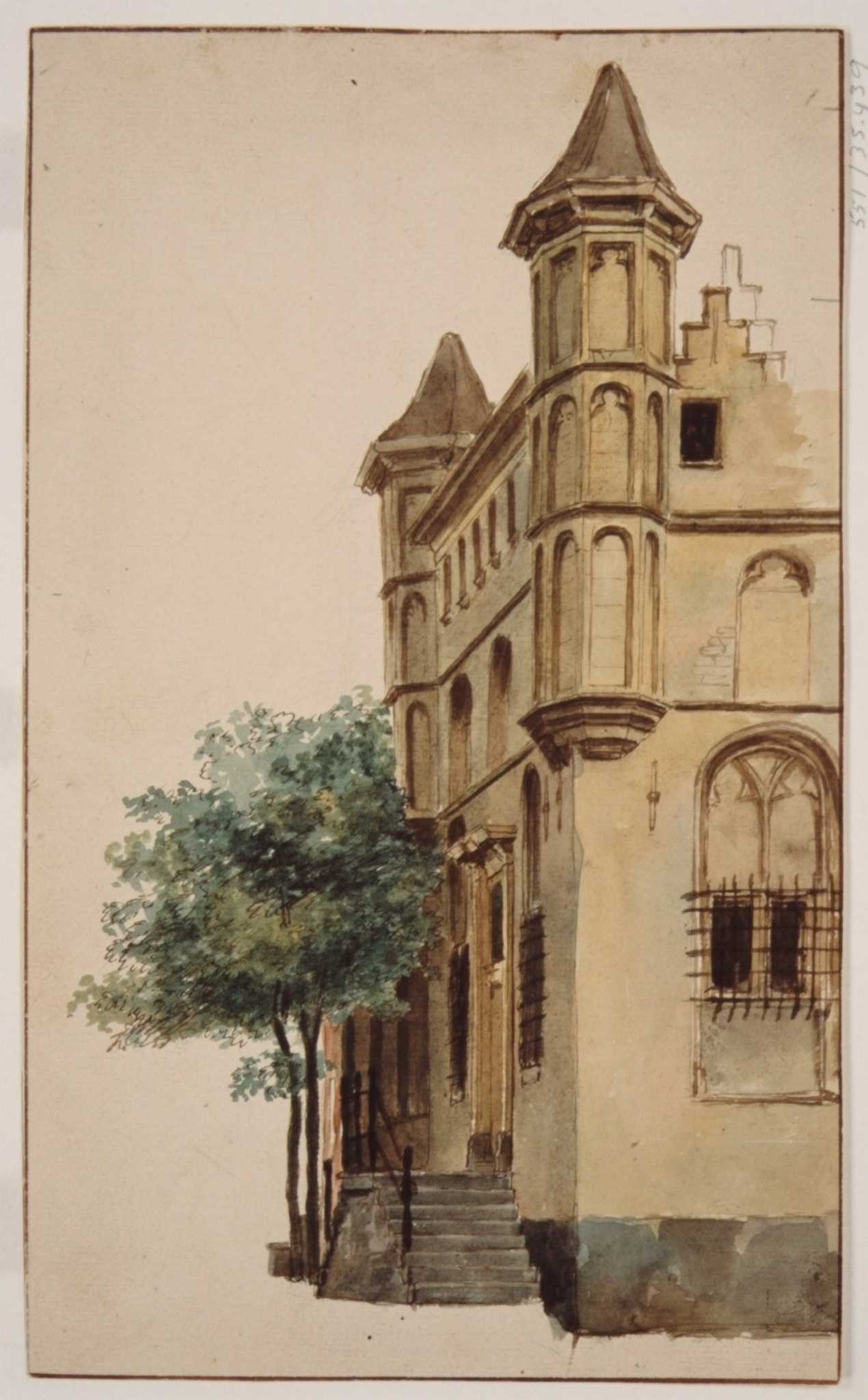 Stadhuis, anno 1834. De trapgeveltjes zijn vervangen door een platte lijst, en de …