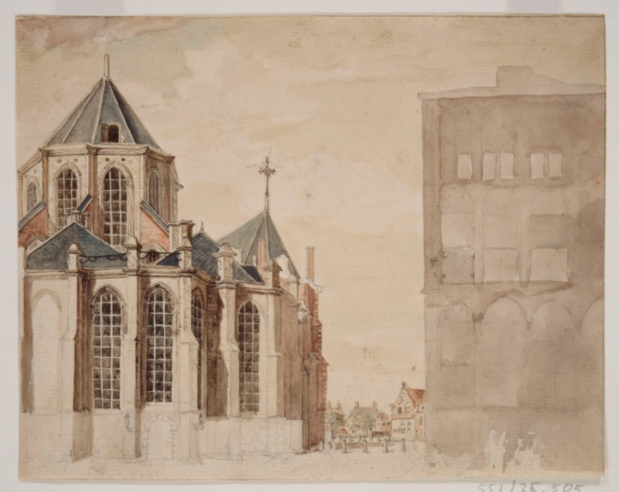 Grote Kerk, gezien vanaf Grotekerksbuurt, omstreeks 1770