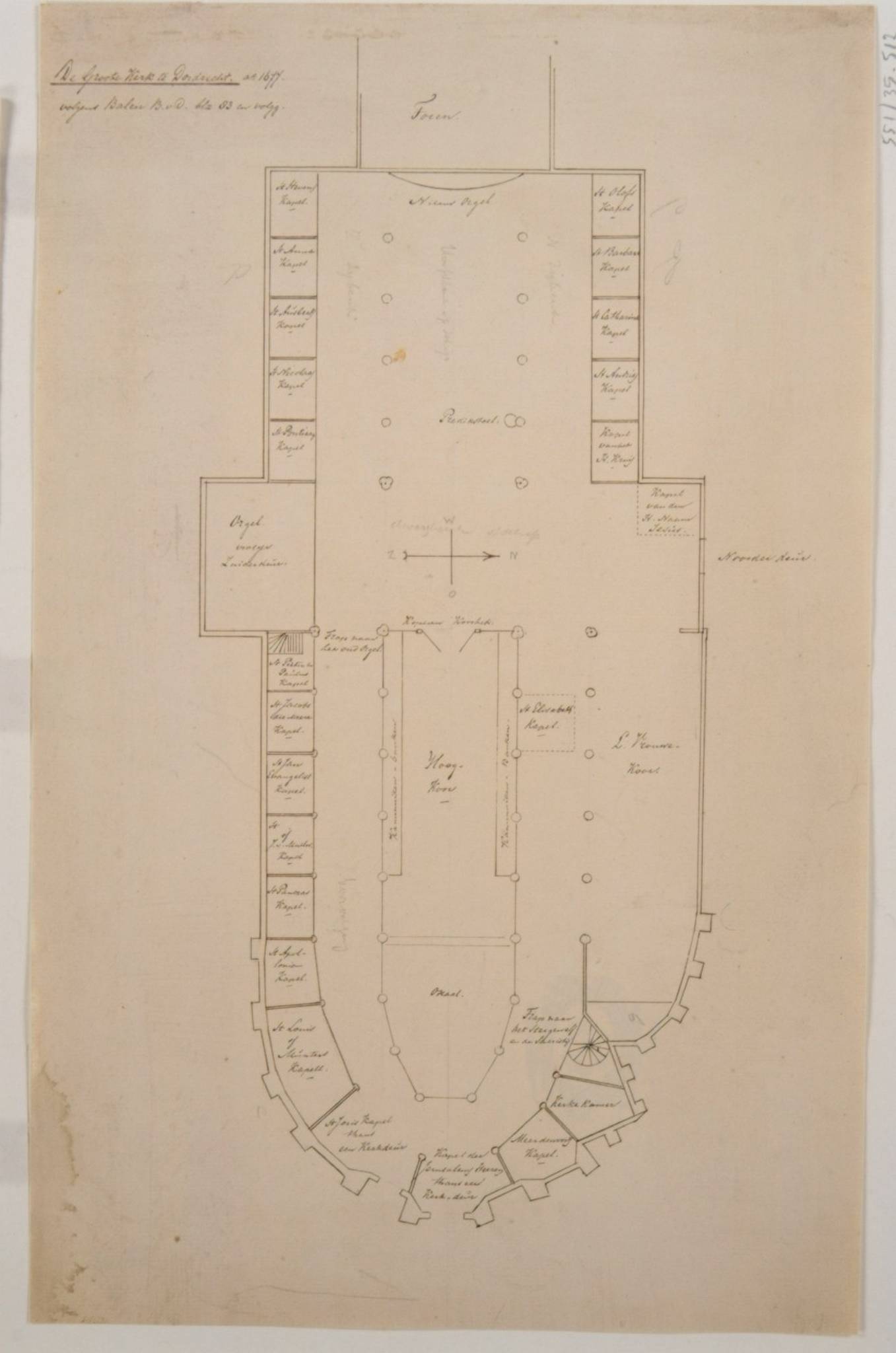Grote Kerk; plattegrond opgemaakt, volgens Balen bl. 83 en volg., anno 1677
