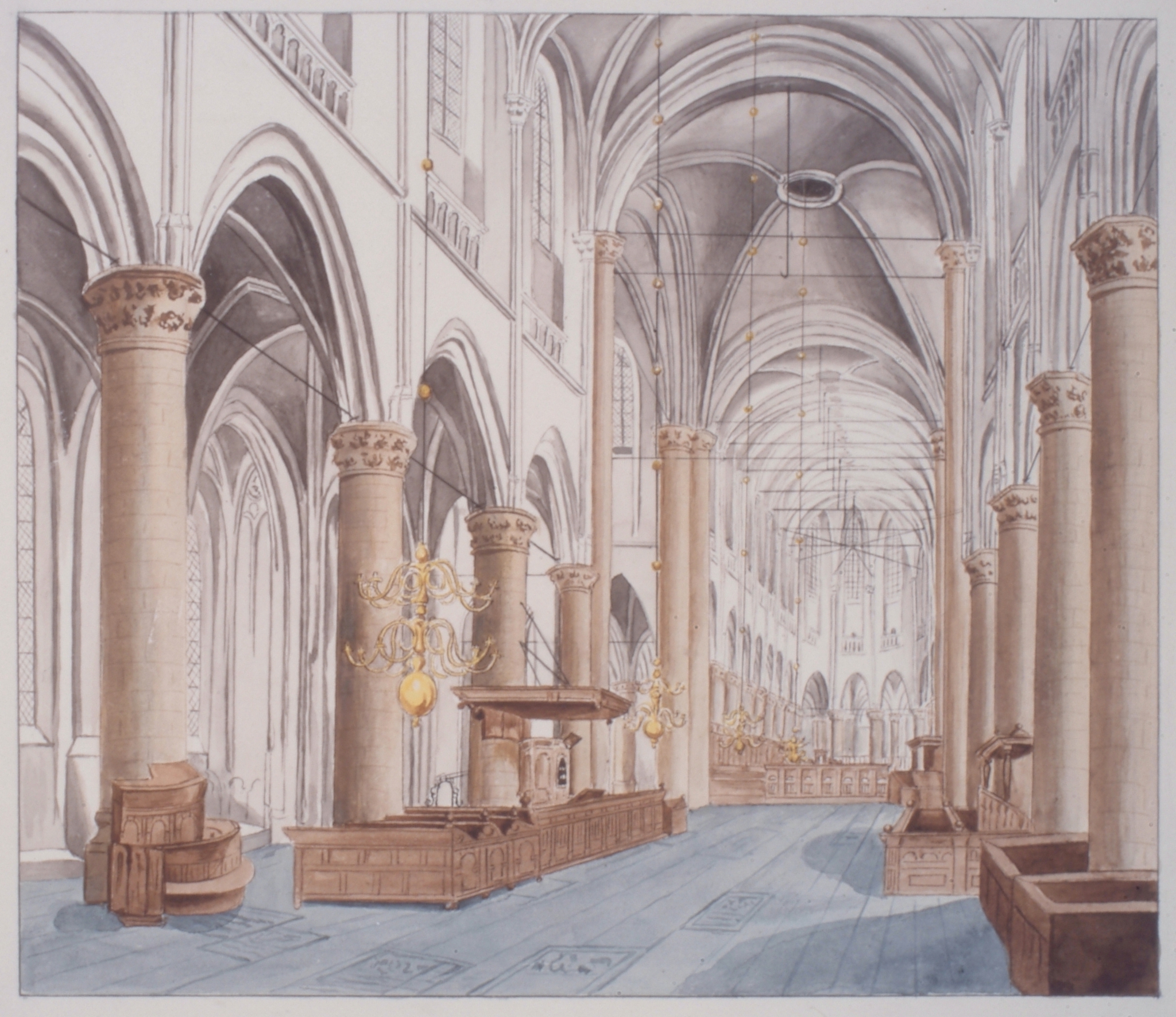 - hxb: 25,7 x 30 cm. De situatie vóór 1743. In dat jaar werd het houten koorhek door het koperen vervangen.