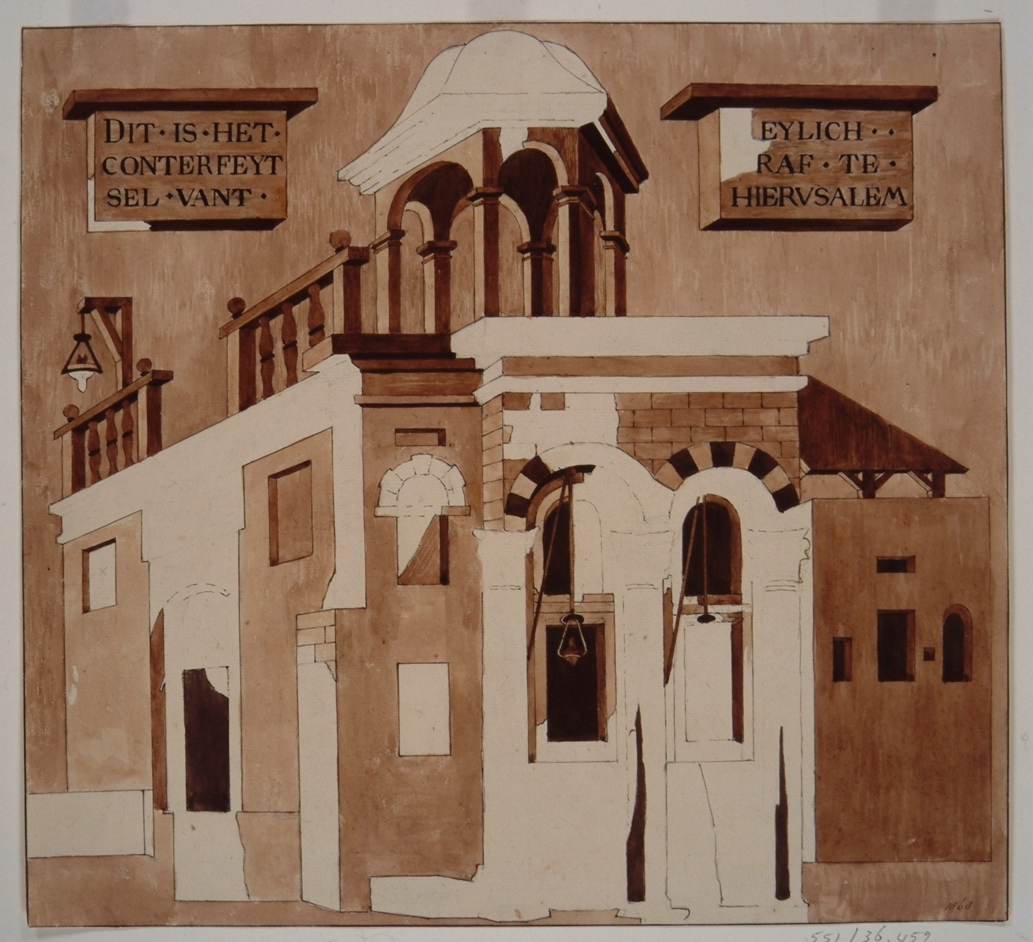 DIT . IS . HET . CONTERFEYTSEL . VANT . (H)EYLIG . (G)RAF . TE . HIERUSALEM Ik ben nog altijd erg benieuwd uit welke tijd deze afbeelding stamt. Iemand enig idee, misschien op basis van het gebruikte Nederlands, de gebruikte bijbelvertaling in de tekstblokken, of de stijl van de afbeelding?