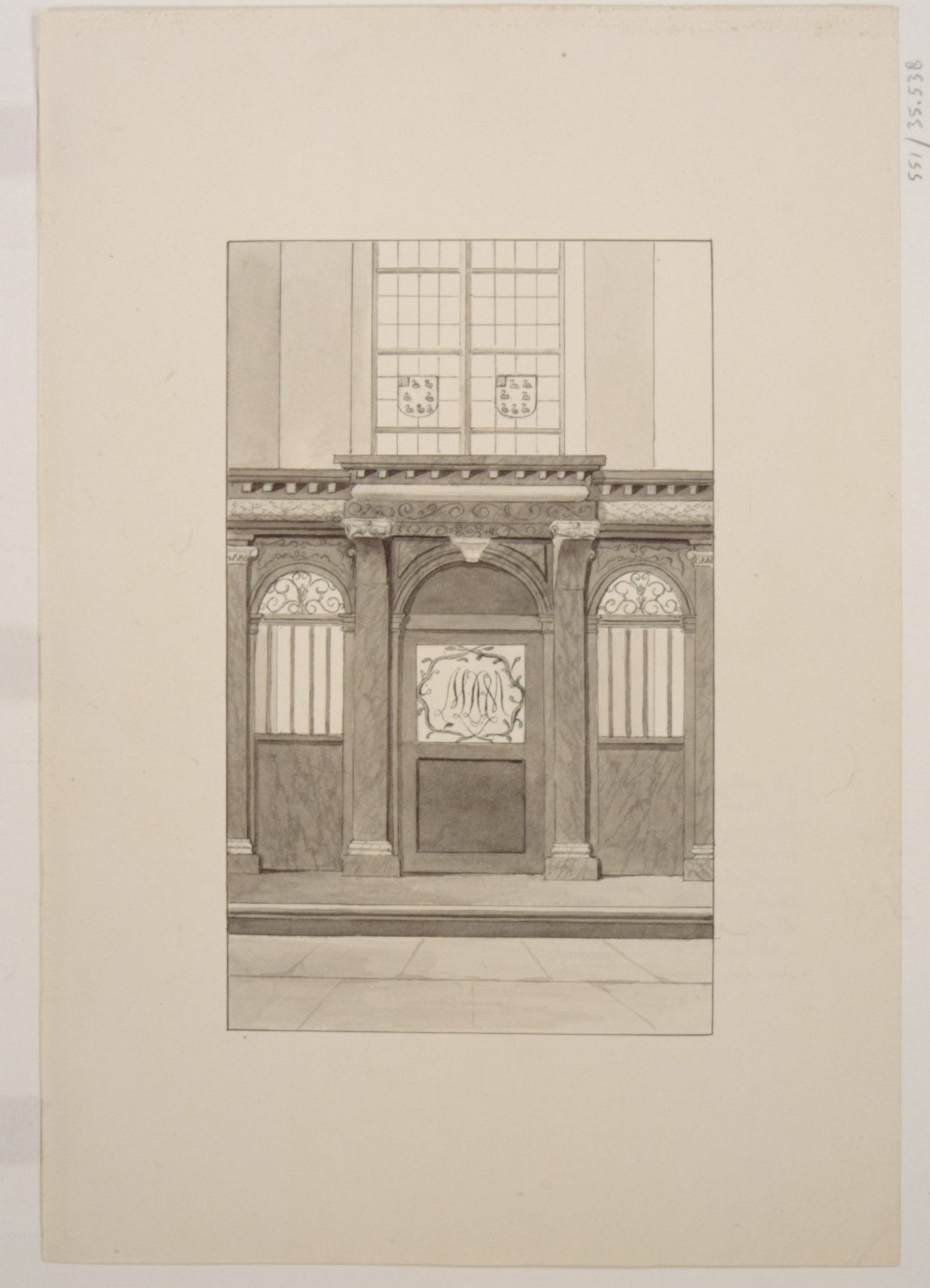 - hxb: 23,9 x 13,9 cm. Naar een tekening in O.-I. inkt van Mr. W. van der Lely 1747, in diens: Versamelinge van Tombes enz., in de Holl. kerken (K. Biblioth., den Haag.)