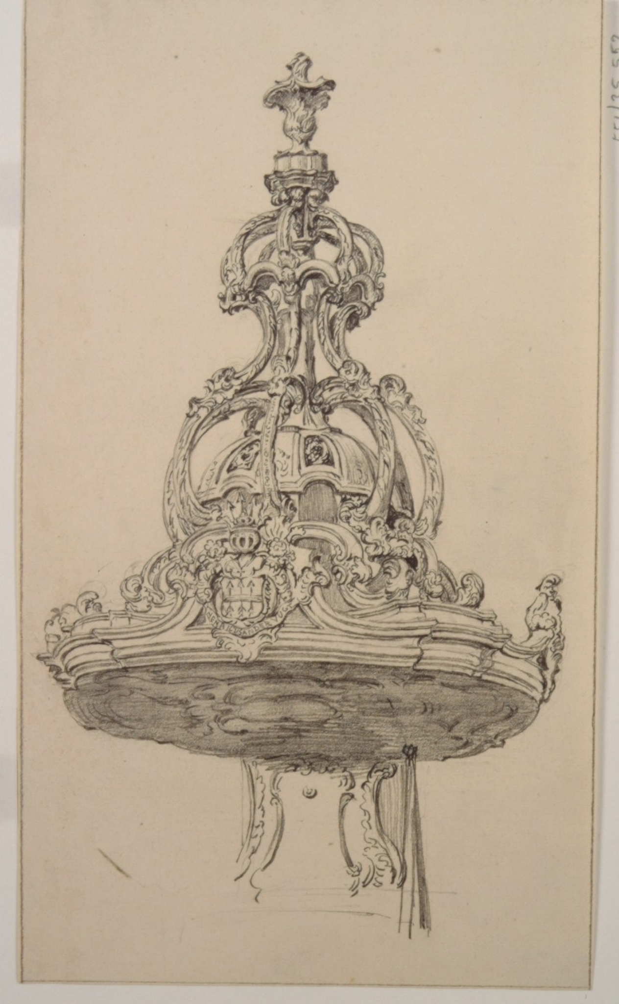 - hxb: 33,5 x 19,5 cm. De kap is gebeeldhouwd door Gerrit van de Wael, naar ontwerp van den Stadsfabrijk en timmerman Jan van der Linden. Aan de voorzijde het wapen van erflater Herman v.d. Vught.